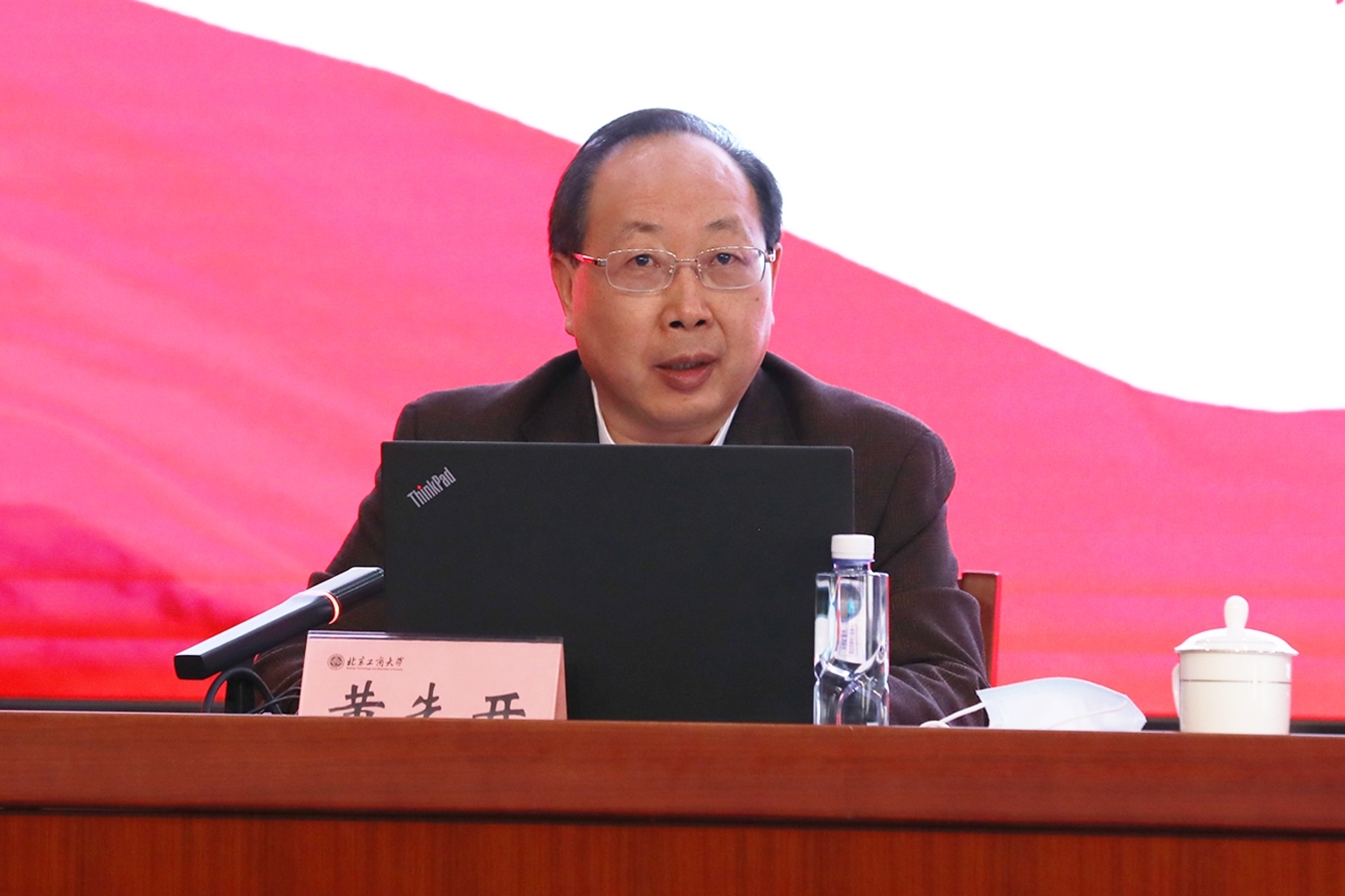 黄先开以《努力践行“三品”办学理念 不断深化教育教学改革》为题,从学校品字型校徽说起,将学校的办学宗旨、办学追求、办学目标融入品德、品位、品质中,同时将学校领导干部的忠诚、干净、担当融入到品德、品位、品质中。黄书记指出,人工智能时代,科技与教育深度融合,为实现因材施教,定制化、个性化、智能化教育,为学校跨越式发展,建设高水平研究型大学提供了最佳的机会。一是要以学生为中心,深化教学改革中“教”与“学”的改革,从以专业管理为主导,转变为以课程管理为中心。二是搭建智慧教学一体化平台,建设数字未来中心实现互联互通、直录直播、资源共享。三是通过校级通识教育课、院级核心课程、专业模块课程来设计课程体系,通过学院专业布局、学院专业调整来设定院级核心课程。四是搭建新维空间,为学生制定个性化培养方案,提供时时、处处、人人可学的环境,真正实现“以学生为中心”的教育理念。五是通过数字未来中心建设,整合全校学历教育、非学历培训,集成校内外、国内外优质教育资源,打造新维教学空间,进行教学质量大数据实时监测,为智能教学提供支持服务,形成以教学改革创新为使命的智慧教学创新中心,实现以课程为中心协同创新。关于领导干部抓落实方面,他强调,一是要旗帜鲜明讲政治,提高政治判断力、政治领悟力、政治执行力。二是要切实加强理论武装。更加突出创新协调发展,更加突出开放共享发展,更加突出绿色安全发展。三是要高度重视坚持系统观念。加强前瞻性思考,加强全局性谋划,加强战略性布局,加强整体性推进。四是要讲究方法提高能力。增强学习能力,成为行家里手,坚持从实践中学,增强斗争精神敢于较真碰硬。五是要特别关注可持续发展。坚持稳中求进工作总基调,坚持底线思维,增强忧患意识。六是要增强责任担当和使命意识,要有等不起的紧迫感、慢不得的危机感、坐不住的责任感。黄先开书记希望各级干部要前瞻十五年、干好这五年、奋斗每一年,齐心协力,在“十四五”开局之年,开好局、起好步,不辜负全体教职工对中层干部的信任和期待,推动学校高水平研究型大学建设又好又快的发展。