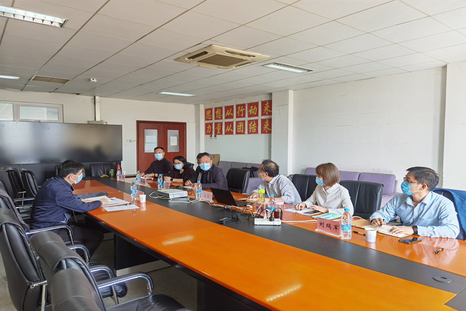 蔡强汇报了学院党委主要工作和下一步思路;执行院长李海生就学院学科建设、教学科研、师资队伍等情况做了简要汇报。