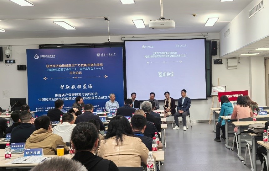 在学术年会的平行论坛期间,中国技术经济学会数据资产专委会和北京工商大学商学院共同举办了“智驭数据蓝海——数据资产管理探索与实践平行论坛”(以下简称“平行论坛”)。中国技术经济学会副理事长兼秘书长黄检良和北京工商大学原副校长、数据资产管理专业委员会主任委员谢志华分别致辞,对数据资产管理行业的发展前景寄予厚望。原国务院参事、国家发展改革委能源局局长徐锭明,中国技术经济学会常务理事、北京航天航空大学国家非传统安全研究中心副主任问好,数据资产专委会首席经济学家、北京国家会计学院教授郑洪涛分别就数字经济、新质生产力和数据资产控制等议题发表演讲。