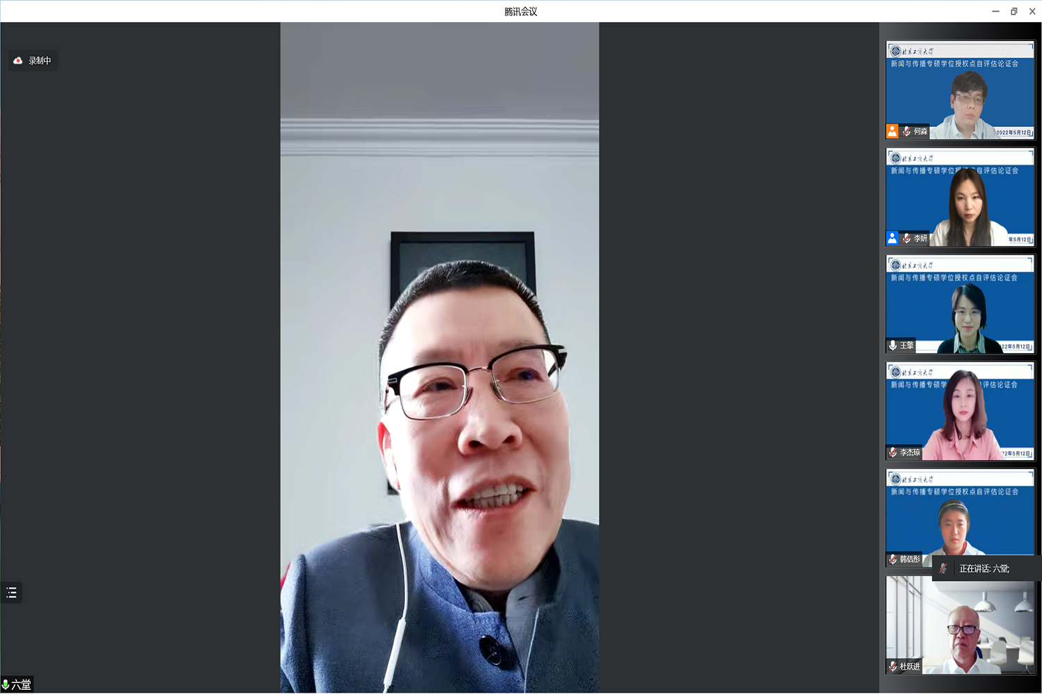 5月12日,传媒与设计学院召开新闻与传播专业硕士学位授权点自评估专家论证会。副校长龚六堂教授出席会议并致辞。论证会专家组成员包括全国新闻与传播专业学位研究生教育指导委员会副主任委员、北京大学新媒体研究院院长谢新洲教授,新闻与传播专硕教指委委员、中山大学传播与设计学院院长钟智锦教授,新闻与传播专硕教指委委员、人民日报社理论部副主任彭国华,中国新闻史学会常务理事、天津师范大学新闻传播学院院长李秀云教授,中国经济传媒协会副会长、经济参考报原总编辑杜跃进。研究生院院长毛新述教授,传媒与设计学院党委书记王海伟、院长王擎、副书记杨帅、副院长李杰琼及研究生导师和任课教师代表、研究生教学秘书、研究生辅导员及在校生代表共计20余人参会。