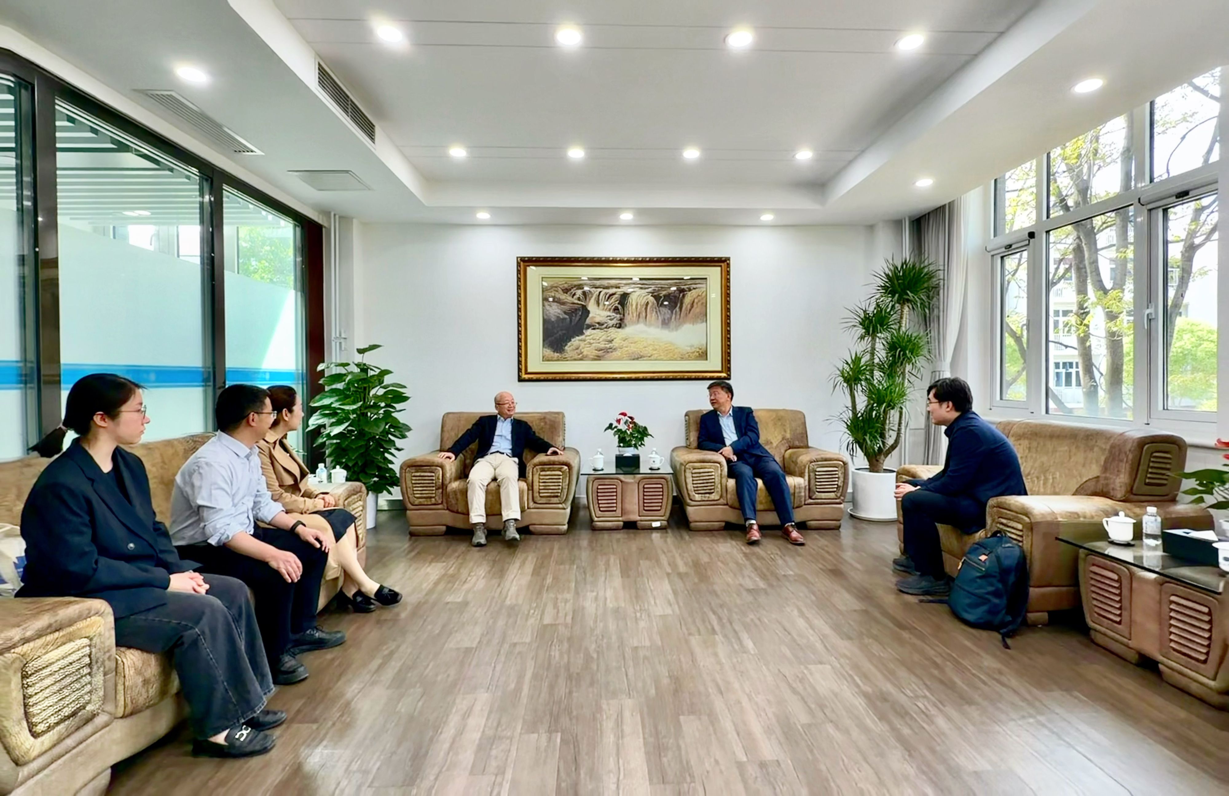论坛举办前,郭建华在行政楼与周黎安教授一行座谈。郭建华简要介绍了学校学科建设和人才培养的“工商一体化”特色,与周黎安教授探讨了人工智能时代构建“商科消费牵引—工科创新驱动—数智链接赋能”发展新范式的生动实践和心得体会,并感谢北京大学经管学部一直以来对北京工商大学经管学科发展的大力支持。