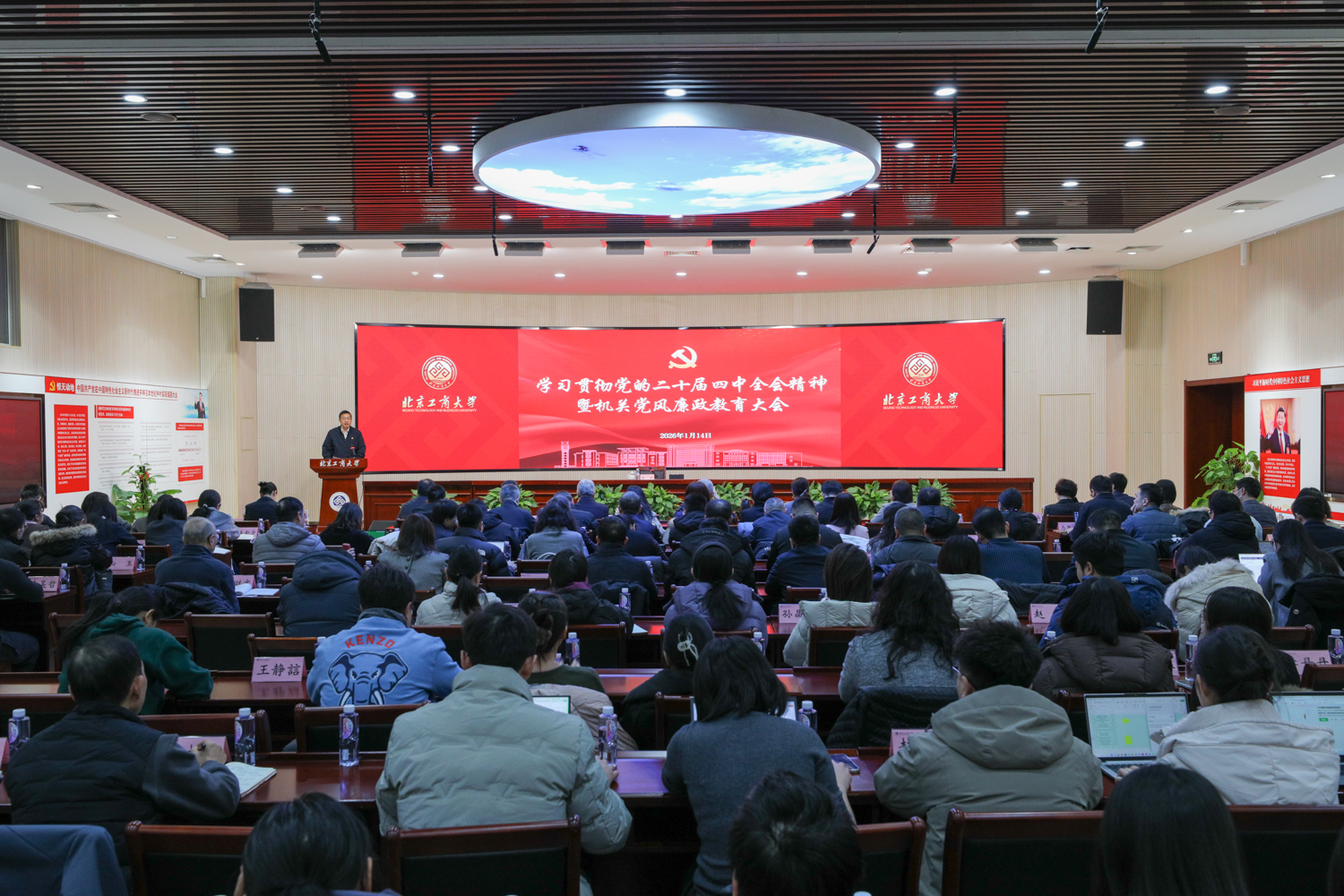 为深入学习贯彻党的二十届四中全会精神,切实筑牢机关全体教职工拒腐防变的思想防线,持续推动学校党风廉政建设和反腐败工作走深走实,1月14日,机关党委召开学习贯彻党的二十届四中全会精神暨党风廉政教育大会,邀请学校党委常委、纪委书记杨红作专题辅导报告。校领导沈千帆、李中奇、徐丹丹、毛新述、邓祥征出席会议。机关全体教职工参加会议。会议由机关党委书记韩军主持。