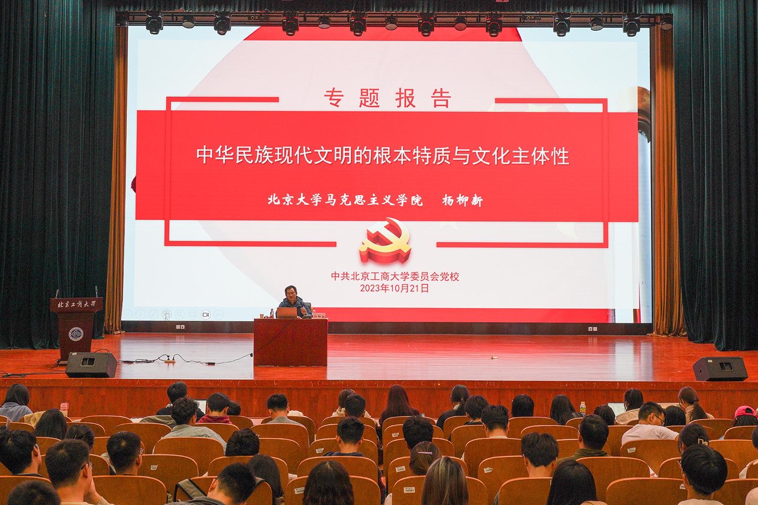 何猛作题为《学习贯彻习近平新时代中国特色社会主义思想,筑牢信仰之基》的报告。她结合不同历史时期的感人案例,阐释了共产党人坚如磐石的共产主义信仰,强调了把牢理想信念“方向盘”的重要意义。北京大学德育研究所所长、马克思主义学院副教授杨柳新带来讲座《中华民族现代文明的根本特质与文化主体性》,他从中华文明的“五个特质”出发,分德、理两方面阐释了文化的主体性与独立性,希望同学们能坚持文化自信,主动弘扬中华优秀传统文化、革命文化、社会主义先进文化,为增强国家文化软实力贡献青春力量。