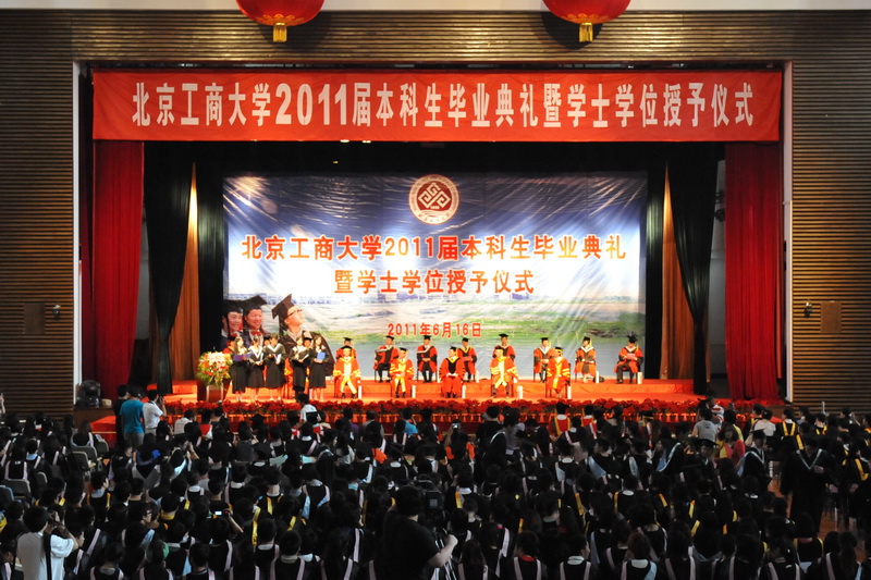 李朝鲜副校长宣读了《北京工商大学关于2011届本科生毕业及学士学位授予的决定》,共有2694名同学顺利毕业,2559人获得学士学位;谢志华副校长宣读了《关于表彰2011届优秀毕业生的决定》,共有71名学生荣获北京市优秀毕业生称号,126人获学校优秀毕业生称号。