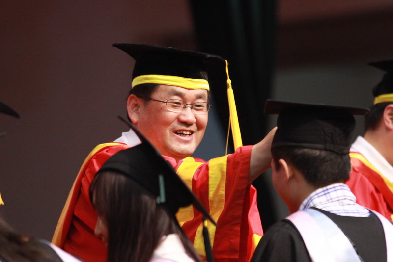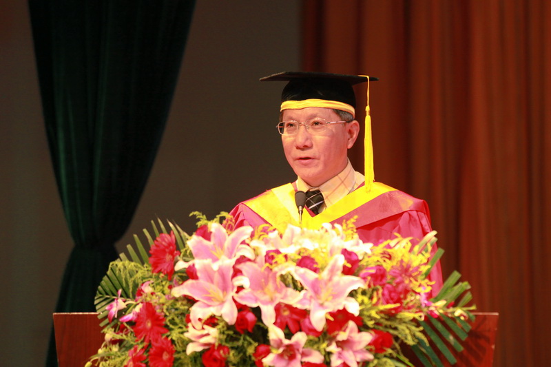 校长谭向勇代表全体领导和老师对2011届毕业生顺利毕业表示祝贺。他与毕业生一起回顾了奥运、国庆、校庆等重大活动,重温了学校召开第一次党代会、明确“三步走”发展战略、荣获党建先进校提名奖等难忘时刻,对毕业生为学校发展做出的贡献表示感谢。他用“健康是一切之根本”、“幸福是一种心境”、“成功是一个追求的过程”等箴言勉励毕业生,希望大家在今后的路途上,安守寂寞,耐住清贫,志存高远,脚踏实地,用判断力、智力、体力、努力和毅力谱写人生的辉煌篇章。最后,校长叮嘱毕业生在走入社会后要记得父母、记得老师、记得母校,并表达了学校对毕业生的支持和祝福。