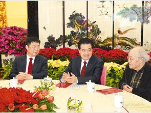 金龙起舞贺新春,皓月当空庆团圆。在中华民族传统节日元宵节到来之际,中共中央6日晚在人民大会堂举行联欢晚会。胡锦涛、吴邦国、温家宝、贾庆林、李长春、习近平、李克强、贺国强、周永康等党和国家领导人出席晚会,同首都知识界代表欢聚一堂、共度佳节。