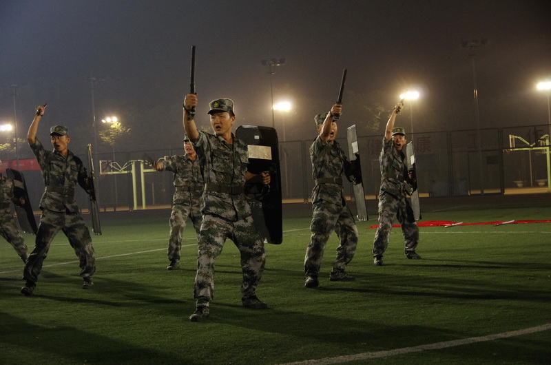 随后,承训部队的官兵为观众呈现了一场精彩绝伦的军事表演。齐步行进,纵列一线,尽展飒爽英姿;棍棒交错,激烈摔擒,彰显军人本色。队列行进刺杀操、盾牌操、匍匐操等表演激起阵阵掌声。