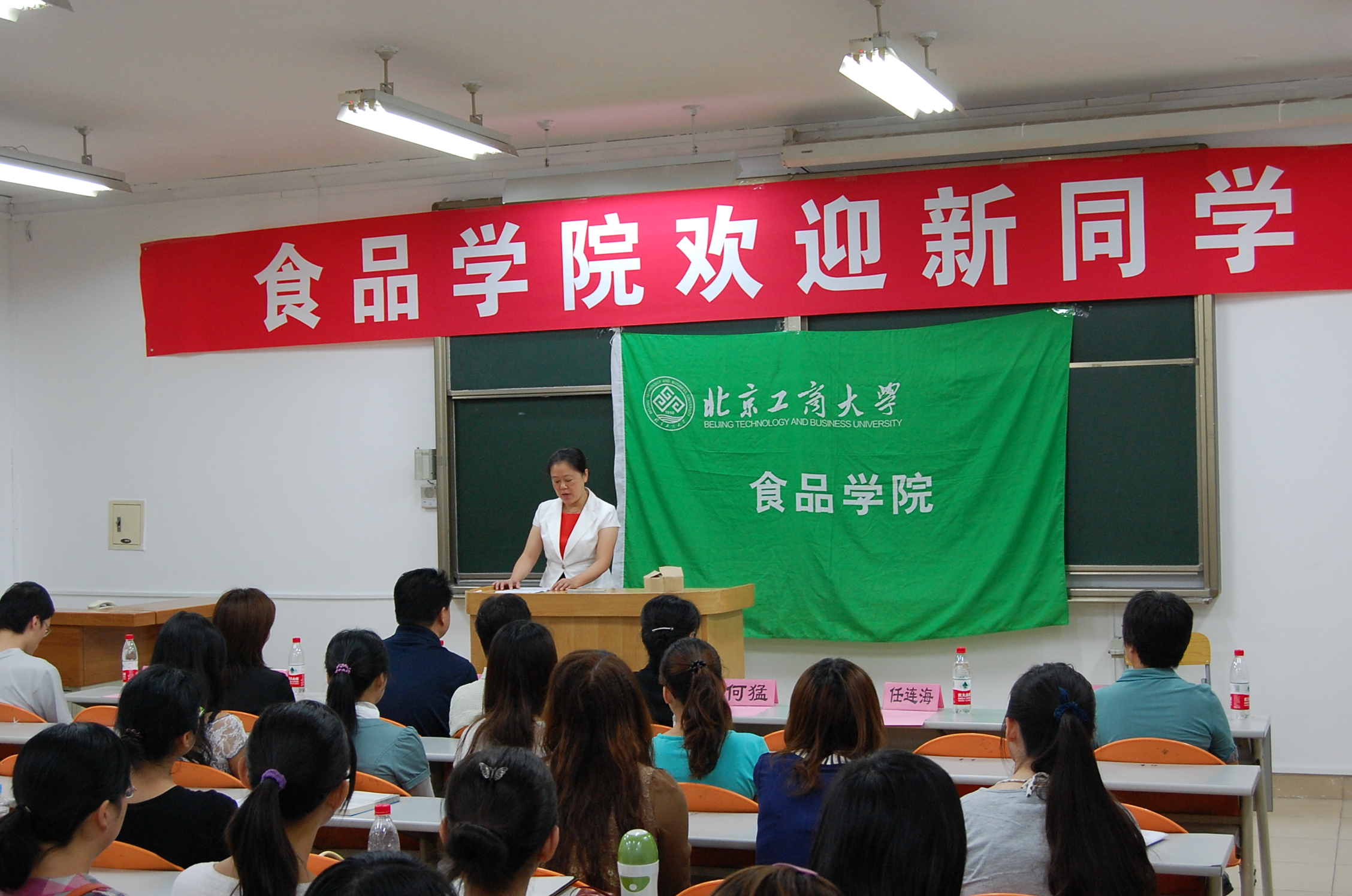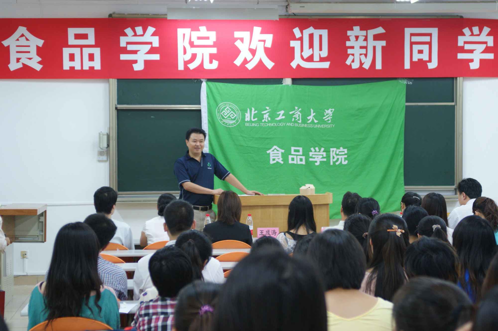 9月6日上午,食品学院2012级研究生迎新大会在阜成路校区举行。食品学院院长徐宝财、学院党总支书记何猛、食品学院副院长王成涛、各系主任、研教秘、辅导员,2012级研究生新生等100余人出席会议,学院党总支副书记胡燕霞主持会议。