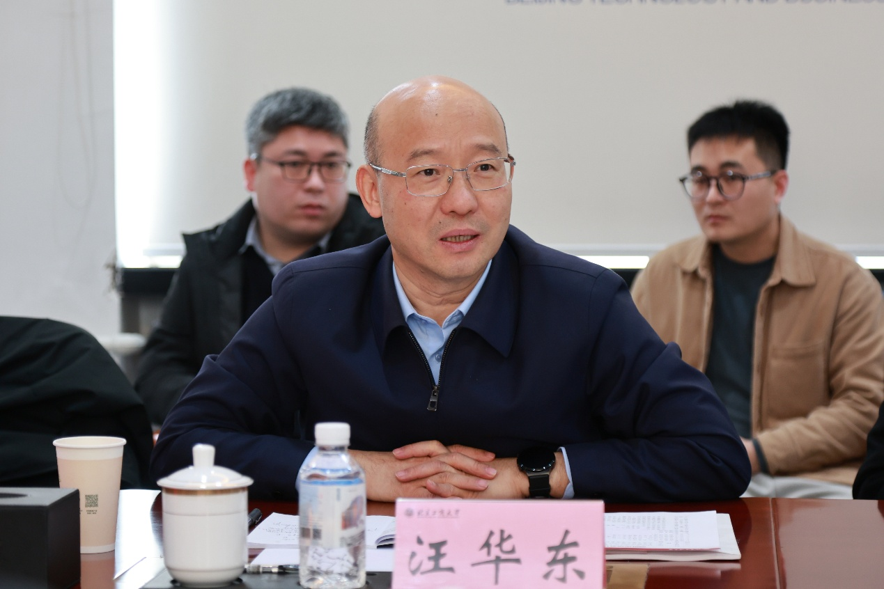 汪华东对学校的热情接待和精心安排表示感谢,介绍了淮北市的产业基础、发展规划及此次调研的合作需求。他表示,淮北市正全力推动产业转型升级,培育壮大新兴产业,对高端人才和先进技术的需求尤为迫切。北京工商大学在食品、轻工、材料科学等领域特色鲜明、实力雄厚,科技成果转化成效显著,与淮北市的产业发展方向高度契合,合作前景广阔。希望双方以此次交流为起点,建立常态化沟通合作机制,在人才培养、科研攻关、成果转化等方面开展全方位、多层次的务实合作,推动校地资源共享、优势互补,实现互惠共赢、共同发展。
