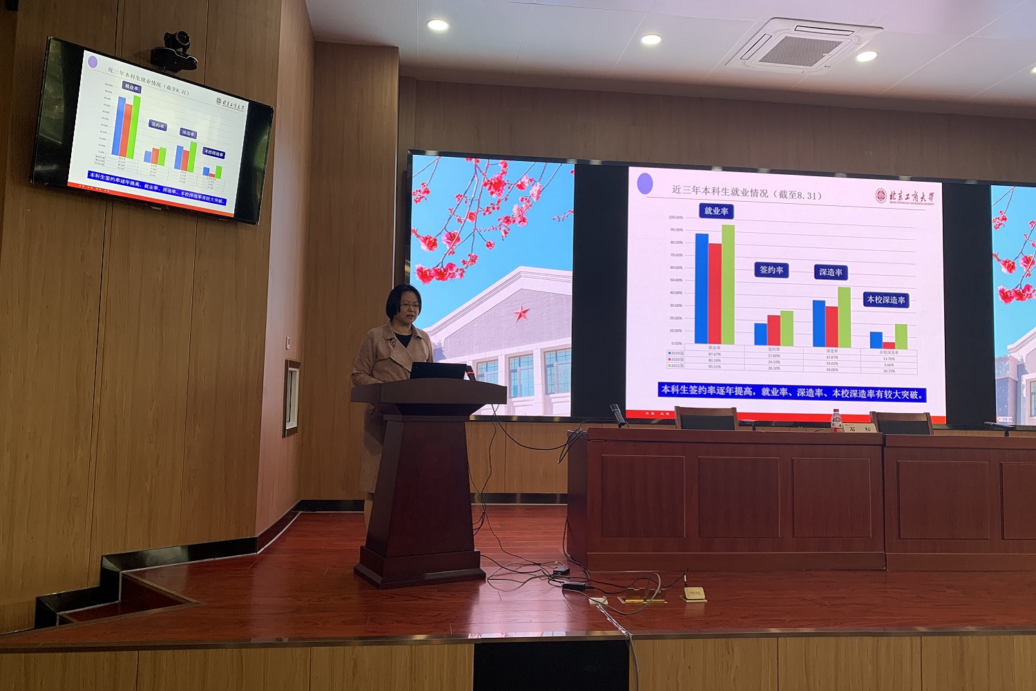 在就业工作方面,按照《北京工商大学2022年就业工作实施意见》要求,一要压实主体责任,落实全员就业。各学院院长是学院就业工作第一责任人,党委(党总支)副书记为直接责任人,研究生导师也是就业的直接责任人,整个学院全体教师要形成一盘棋,统一思想,形成合力,层层落实,各个推进。二要摸清毕业生就业状况底数,将就业工作做实做细。就业工作队伍要了解毕业生就业心态,做到一人一策,及时沟通就业进展,把最好的资源和服务提供给毕业生。三要把访企拓岗工作做到实处。学校立足北京,服务首都,人才培养的重点是与北京城市发展相匹配,访企拓岗不仅是开拓更多岗位资源,也是全面了解专业人才需求,完善人才培养方案的重要过程。四是重视实践基地建设。丰富毕业生实习实践经验,为毕业生就业工作打下良好基础,达成本年度就业工作目标。