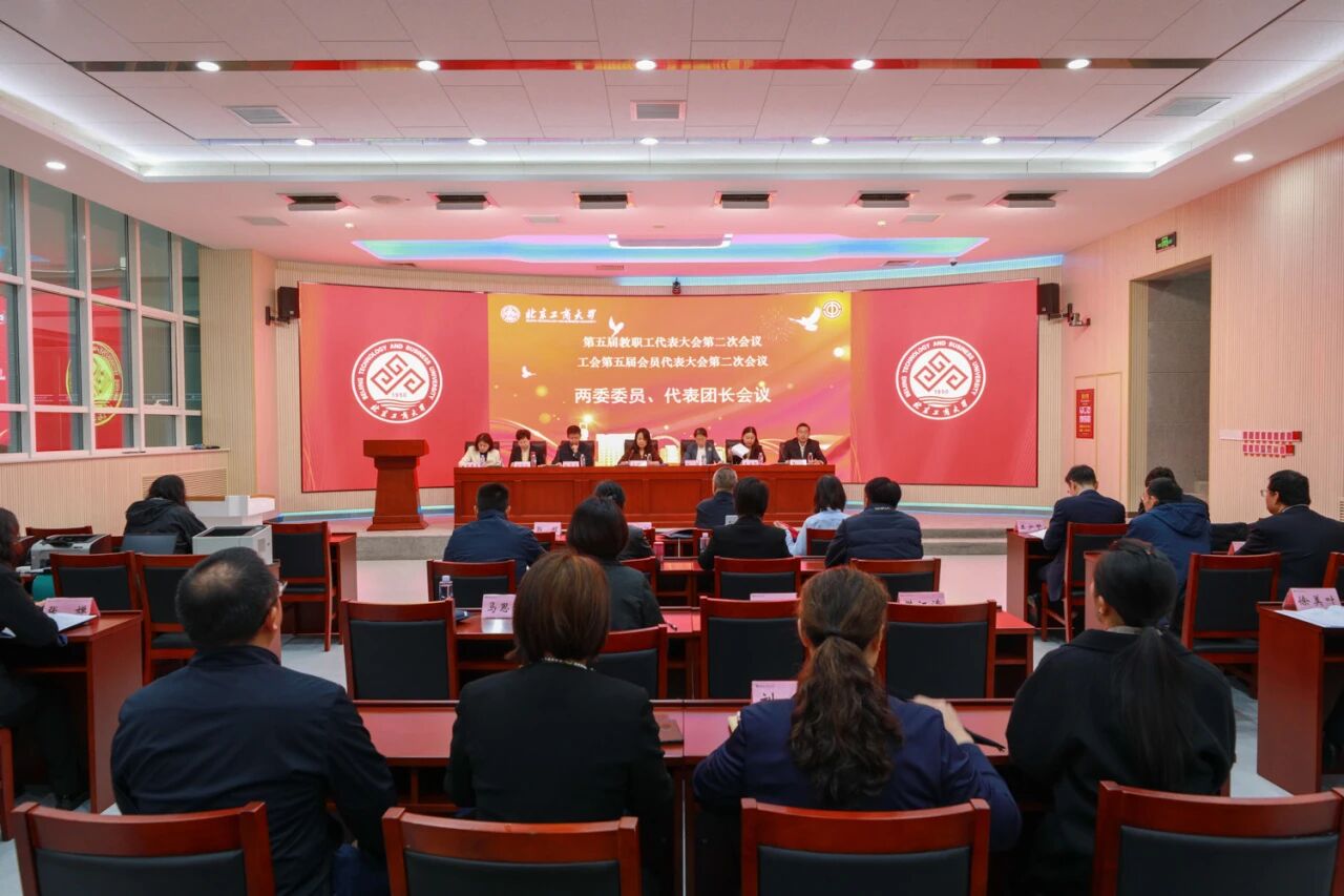 党委常委、副校长寇红江作题为《履职尽责显担当 凝聚共识促发展》的教代会工作报告和题为《用心用情优服务 砥砺奋发创一流》的工会工作报告。报告全面回顾了过去一年教代会、工会在校党委的坚强领导下,紧紧围绕学校发展大局,认真履行各项职能,在深化思想引领、推进民主治理、维护教职工权益、服务高质量发展等方面取得的积极进展。同时,对于教代会、工会工作的不足作了客观的分析,明确了今后一年学校教代会、工会工作任务。工会将在学校党委的坚强领导下,不忘初心、牢记使命,锐意进取、扎实工作,团结广大教职工,为加快建成特色鲜明的高水平研究型大学,谱写中国式现代化建设的北工商新篇章而努力奋斗!