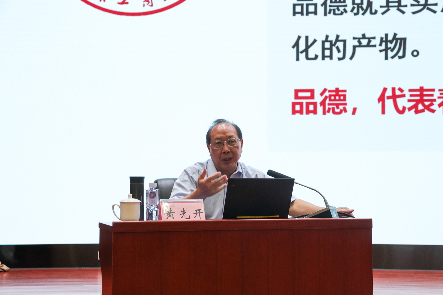 黄先开就学校“发展历史与愿景”、“校徽与大学教育”以及“学习与成长成才”三部分与新生做了交流,让新生从历史的维度、时代的需求、个人的发展等多维度认识到大学的意义。他首先介绍了学校的历史沿革、办学宗旨、建设发展,详细介绍了北工商校情、校史,为新生展开了一幅一代代北工商人奋斗拼搏、与祖国发展同频共振的历史画卷。他从世界百年未有之大变局角度,带领大家了解未来大学教育中教育的特点以及北工商在数字化转型中的积极探索。针对新生如何适应大学学习生活这一问题,黄先开提出大学时期学生应掌握的五项基本能力—即学会倾听、学会时间管理、学会合作沟通、学会锻炼身体与学会持之以恒。