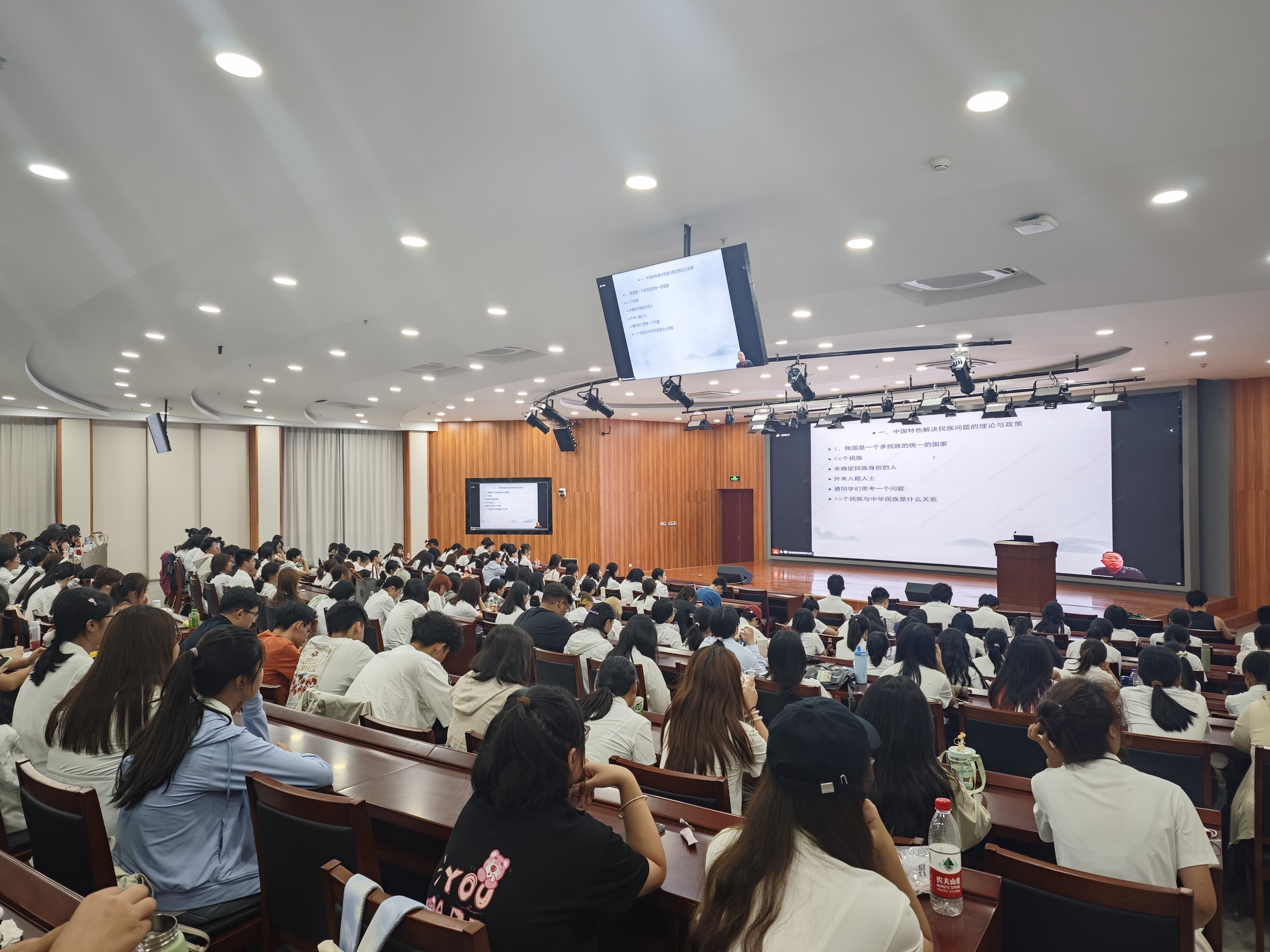 此外,此次新生入学教育还邀请了中国日报社副总编辑王浩为新生讲授《共创共叙中国故事,以国际传播力塑造全球胜任力》,他希望同学们能够在初入大学时就种下讲好中国故事、传播中国形象的种子。学校马克思主义学院副教授姚洪越以《中国特色民族宗教的基本理论与政策》为题,引导广大学生铸牢中华民族共同体意识,用实际行动维护校园、社会的和谐稳定。