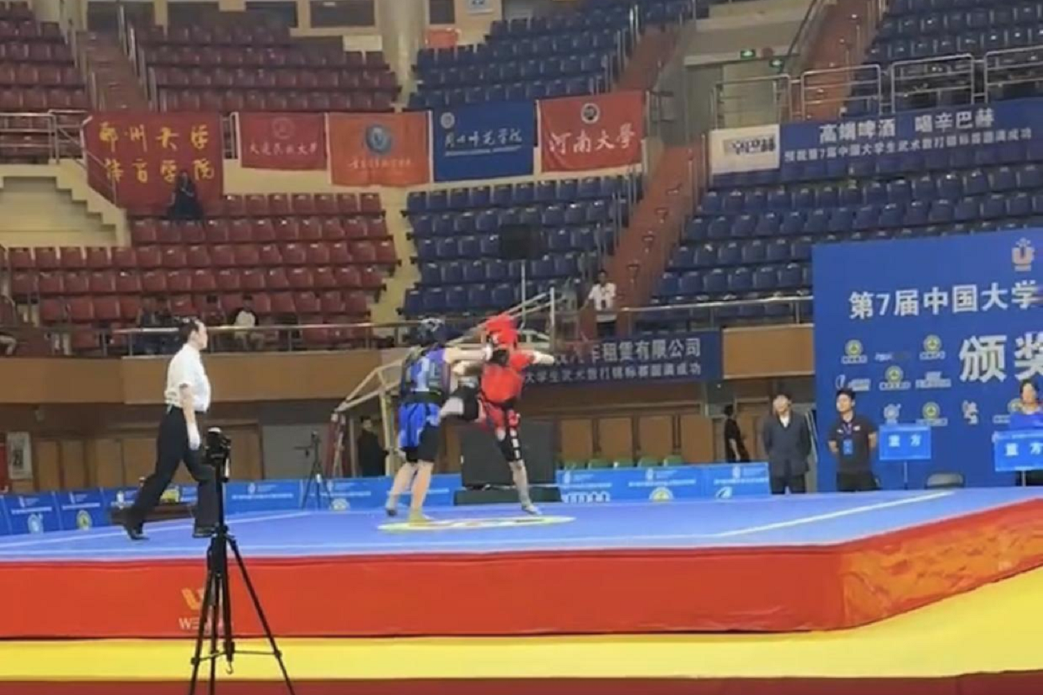 中国大学生武术散打锦标赛是由教育部、中国大学生体育协会主办的国家最高级别武术散打赛事,汇集了清华大学、北京体育大学、上海体育学院、吉林体育学院、中国人民公安大学等在内的50多所高校共500余名运动员参赛,赛事不仅代表着国内大学生的最高武术散打竞技水平,更展现了中国武术散打项目的独特魅力。