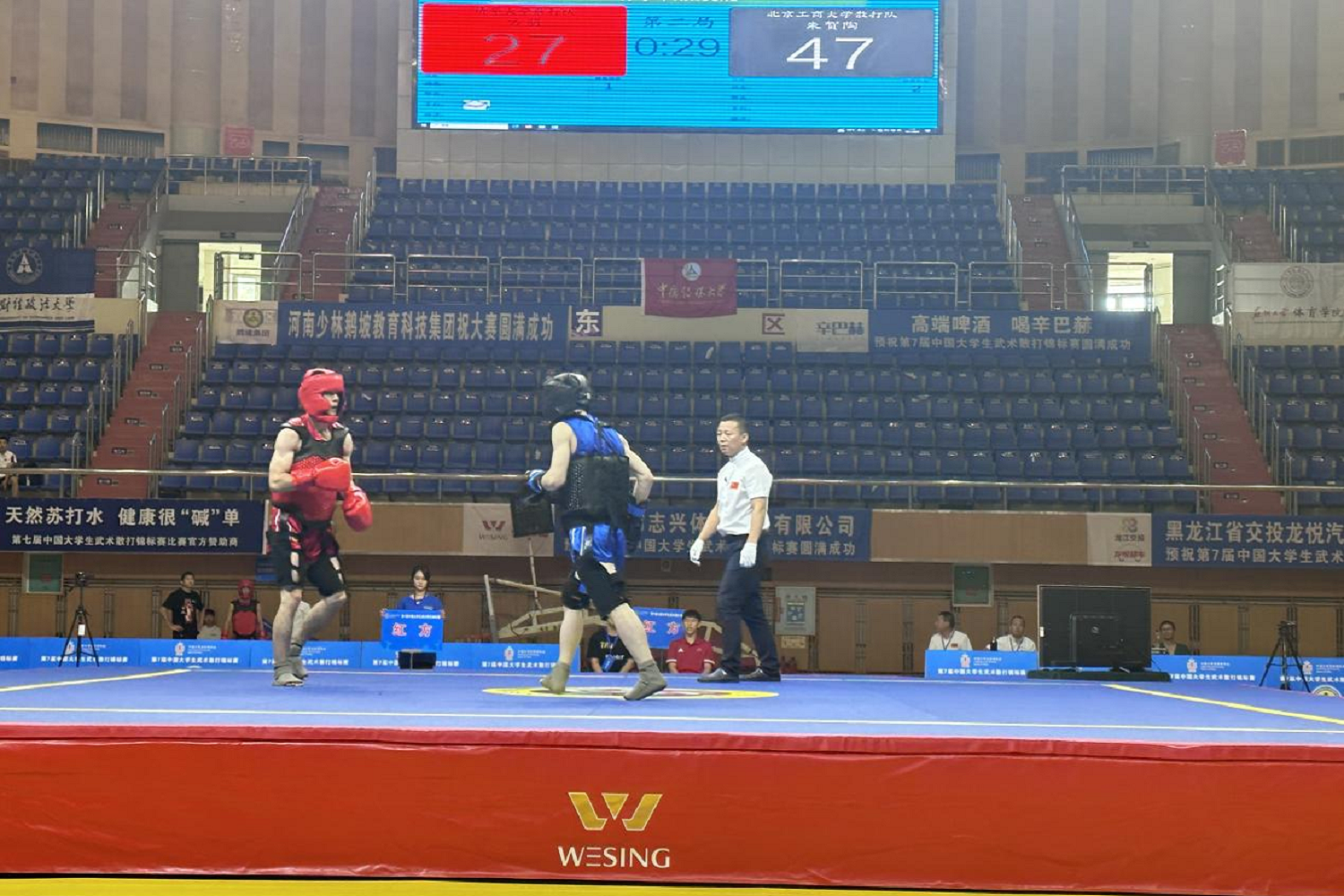 在赛场上,学校散打队展现出北京工商大学学子积极向上、敢于拼搏的进取精神和青春风采,同时也增进了队员之间凝聚力和战斗力,培养了大家的集体荣誉感,展现了北工商学子的精神风貌;更是传承了中华传统武术文化,弘扬了自强不息、顽强拼搏、争创佳绩的体育精神,同时与其他院校深化交流、筑牢友谊,展示学生们青春风采,希望在未来有更多热爱散打的北工商学子加入散打队,让北京工商大学散打队在各项赛事中都能取得更加优异的成绩!
