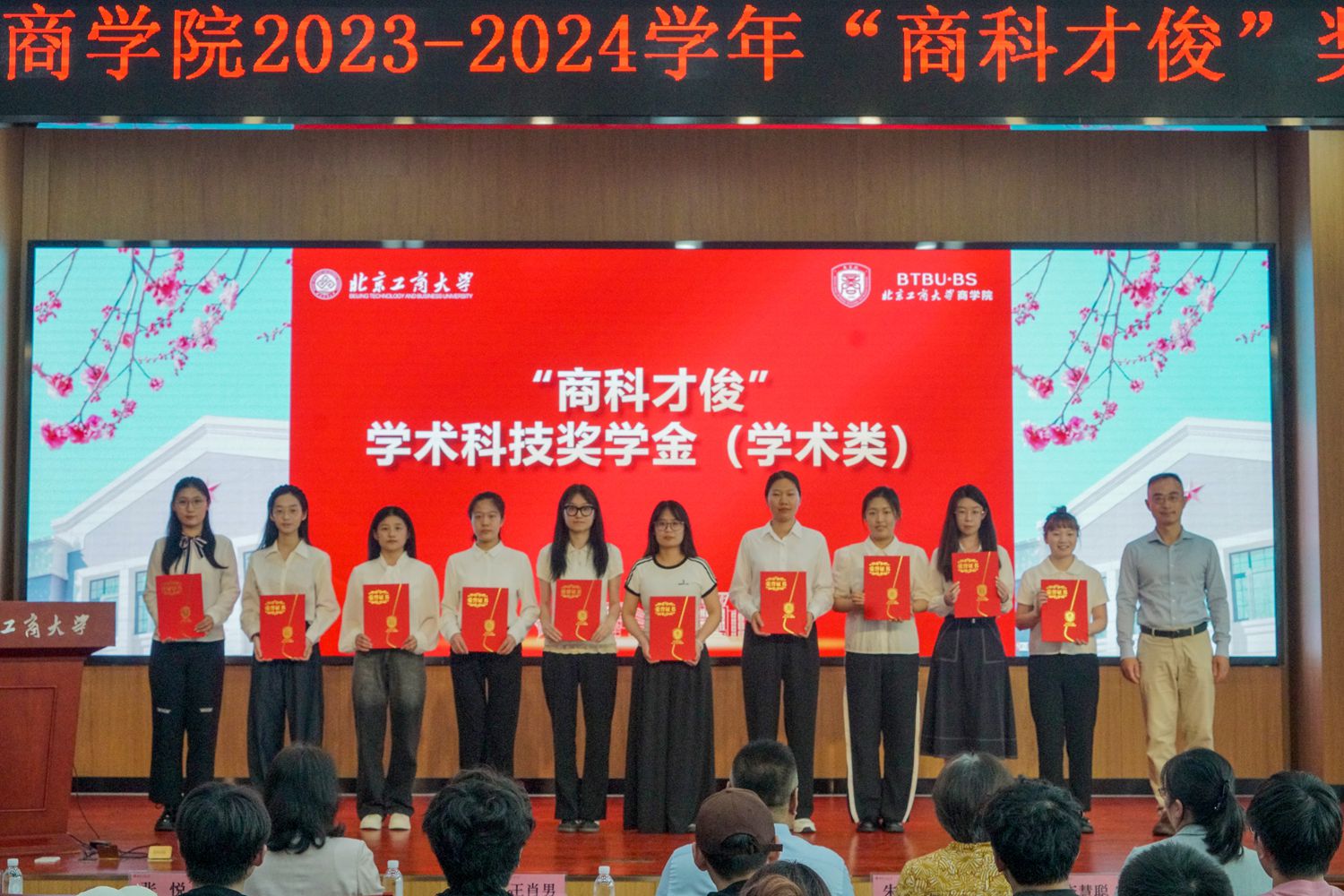 20日下午,商学院举行了2023-2024学年“商科才俊奖学金”颁奖仪式。“商科才俊奖学金”由冯亚校友于2017年捐赠。会上对商科才俊专业优秀奖学金、学术科技奖学金、优秀实习实践奖学金和自强奖学金获奖者进行了颁奖。北京德信汇富投资管理有限公司副总裁、86储运校友王肖男,校友会、教育基金会办公室主任张春萍,商学院党委书记樊江涛等与获奖学生代表100余人参加了颁奖活动。