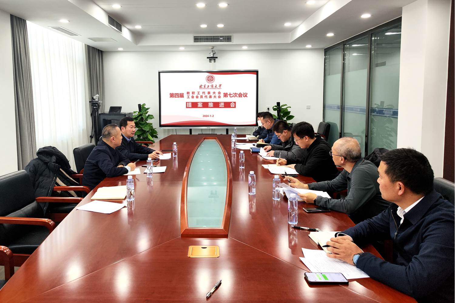 1月2日,学校在良乡主校区召开第四届教职工代表大会、工会会员代表大会第七次会议提案工作推进会,学校党委常委、副校长、工会主席、教代会执委会主席刘敏华主持会议,承办部门负责人参加会议。