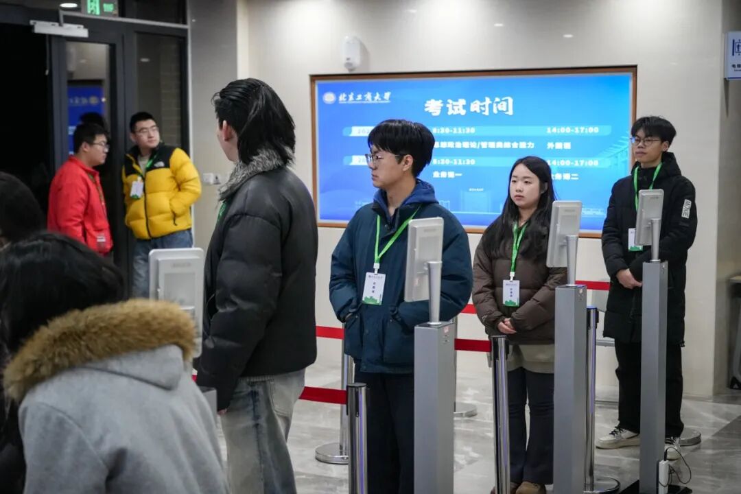 考生专用通道沿线,志愿者们坚守各个点位,主动引导路线、帮忙解决问题。一句“这边请”“有需要可以找我”,让许多考生对北工商留下了“细致又暖心”的初印象。
