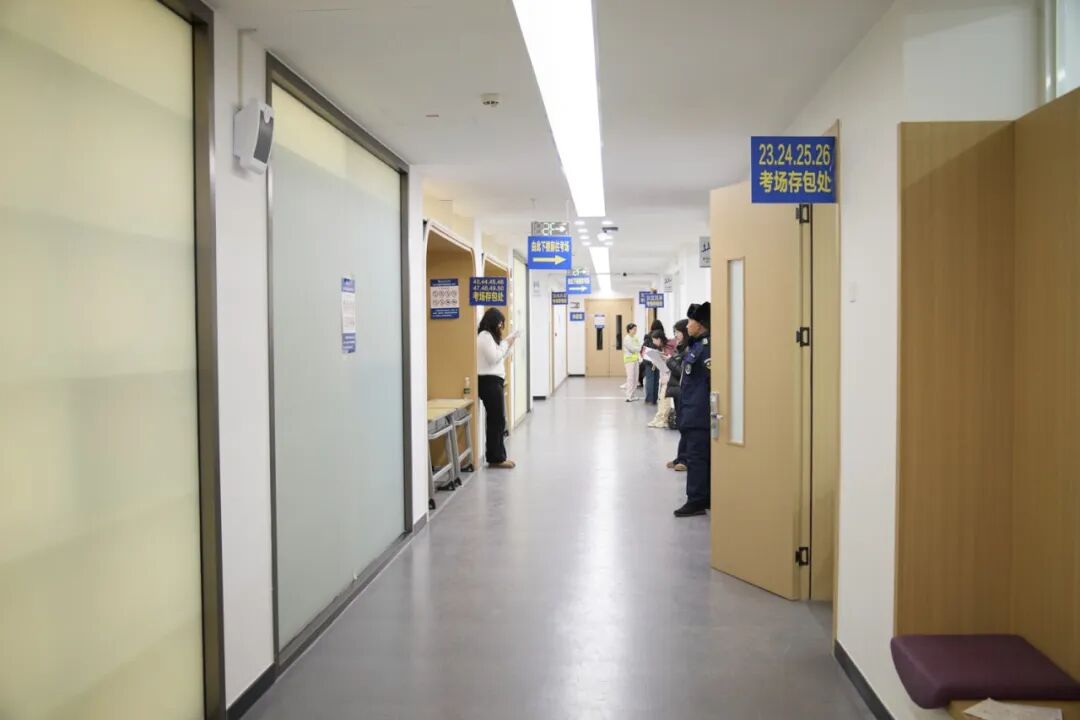走进校园,迎考氛围扑面而来!考风考纪提醒清晰醒目,时刻传递着“诚信应考”的底线要求;电子大屏滚动播放考试时间和注意事项,关键信息一目了然;地面上的引导线、指示地贴精准标注着“考场方向”“存包区”“休息区”,跟着指引就能顺畅抵达目的地。每一处布置都兼顾了实用性与氛围感,让考生在紧张的备考中感受到满满的关怀,从容奔赴考场。