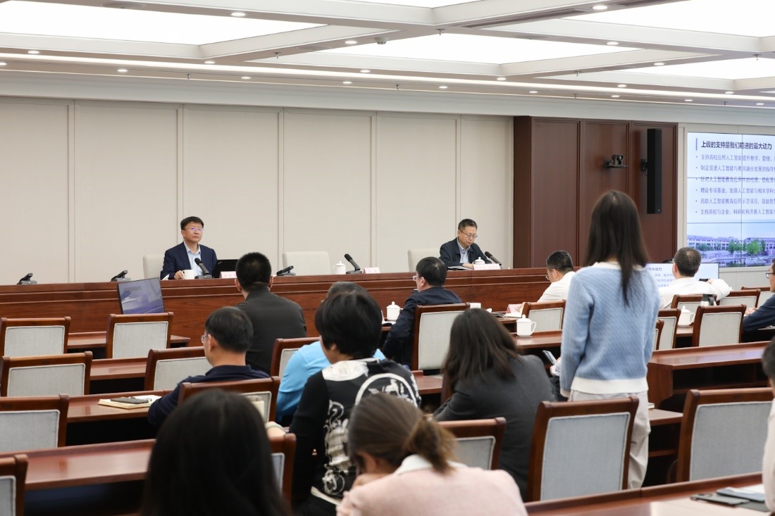 报告结束后,郭建华同与会人员就人工智能推动高校、科研院所、新型研发机构、社会力量等联动促进教育高质量发展;人工智能推动部门和单位治理能力和治理结构转型升级,提高工作效率和质量;人工智能生成的教育供给、教育资源的客观性、准确性如何界定评判等问题进行了深入互动交流。整场报告会高潮迭起,反响强烈。
