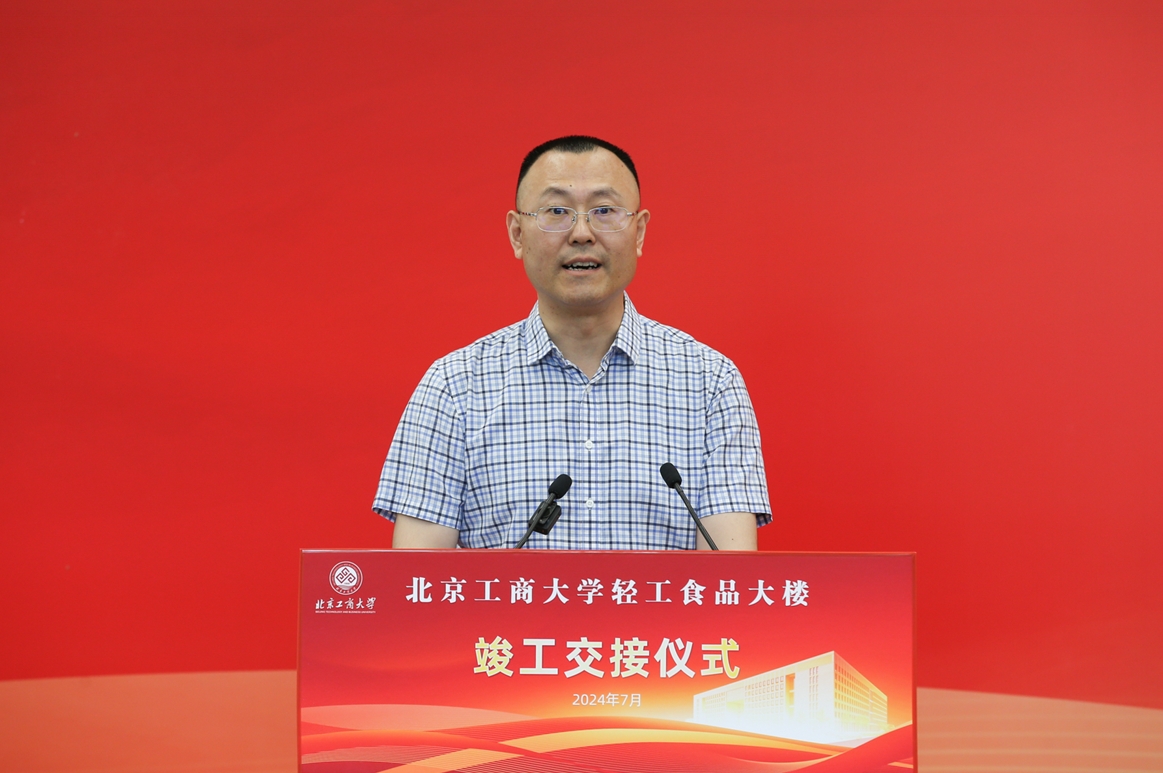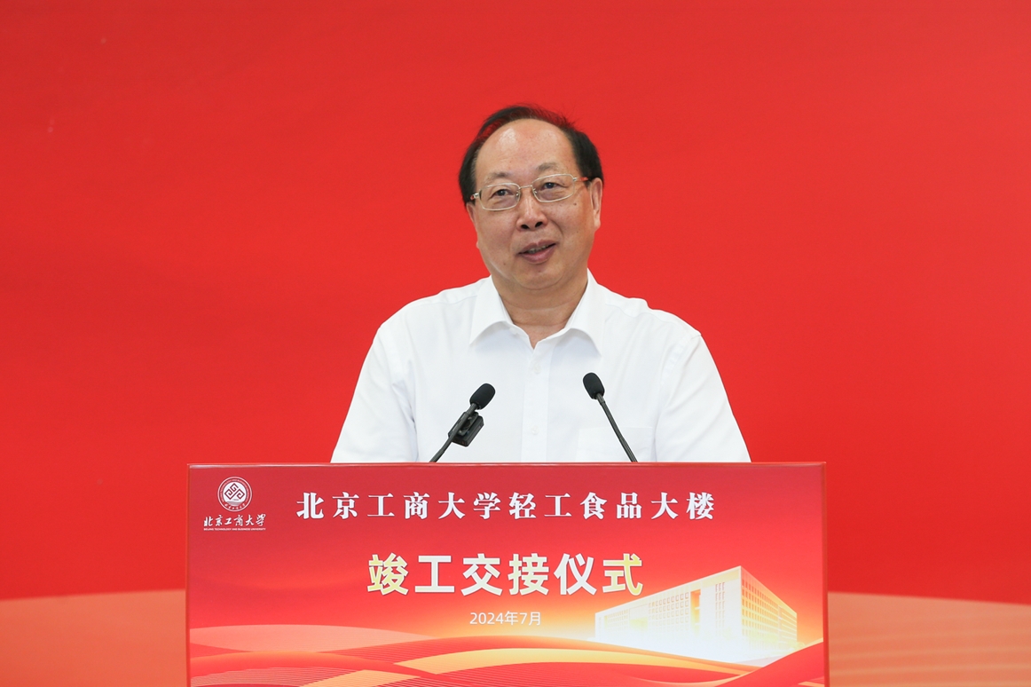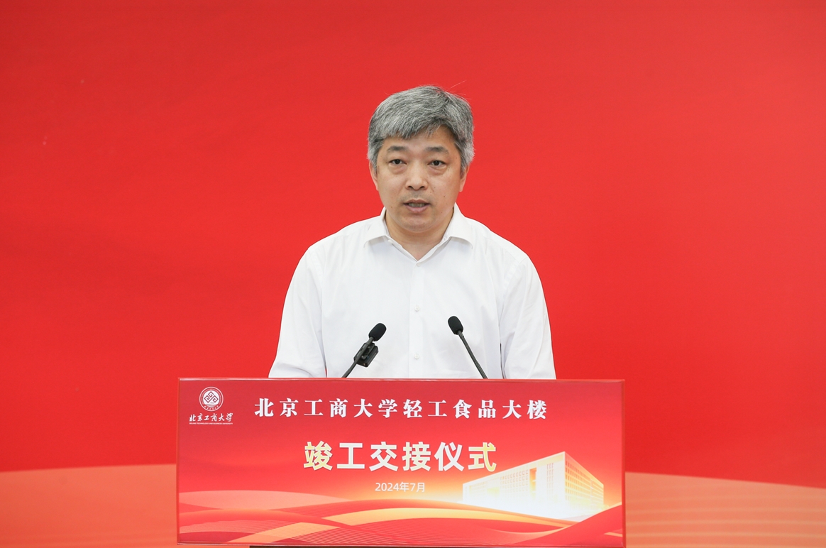 黄先开代表学校党委和行政,向长期以来关心和帮助学校发展、推动学校建设的市教育两委、房山区政府及良乡大学城的各位领导和同仁,向辛勤付出、精益求精的北京建工集团有限责任公司全体建设人员和参建单位,向与学校戮力同心全校师生员工表示崇高敬意和诚挚感谢。黄先开强调,轻工食品大楼的竣工投入使用,标志着学校在优化功能布局、拓展办学空间方面迈出了坚实的步伐,不仅为学校的教学科研提供了更加优质的环境和条件,也为学校高水平研究型大学建设奠定了坚实基础。黄先开提出,不仅要建好,更要用好轻工食品大楼,学校各有关单位要加快推进内部设施配置、尽快完成搬迁工作,继续秉承“求真、立德、勤奋、创新”的校训精神,突出商科、轻工和食品为主的办学特色,与首都发展同向同行。