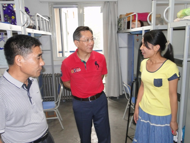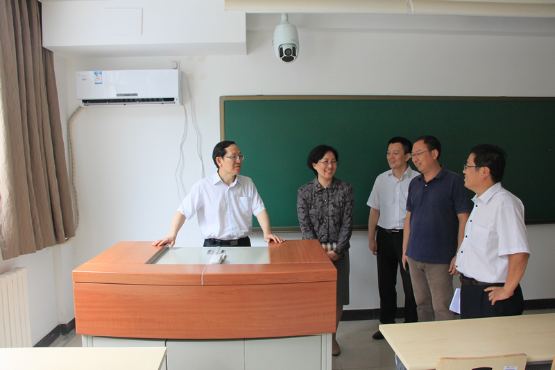 离开迎新现场,校领导一行来到教一楼,检查教一楼翻修改造工程施工情况,重点查看了教学楼内课桌椅、地面、多媒体教学设施、公共卫生间维修改造和设备配备情况。在听取了规划建设处、国资处、后勤管理处、网络中心相关负责人介绍各归口负责的相关工作后,谭向勇校长肯定了各部门的辛勤努力,感谢施工方在暑假期间加班加点的工作,强调务必以高度的责任感与使命感,在开课前全面检查收尾工作,确保工程质量,给师生营造崭新、整洁、舒适的学习环境。
