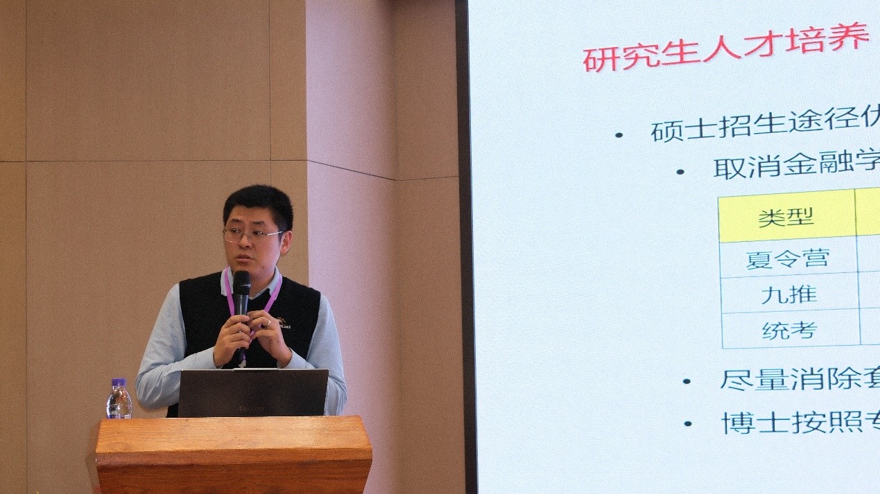 中国人民大学财政金融学院副院长马光荣教授重点介绍了其所在学院在本科人才培养“起底式改革”和“革命性重塑”方面的思考与实践。他从学科与专业布局、培养体系改革以及如何应对AI时代挑战三个方面进行了系统分享。他指出,学院围绕人工智能时代的人才需求,对课程体系进行了全面重塑,着力强化学生的科研与实践能力,致力于培养兼具科技素养与人文思辨的高水平复合型人才。