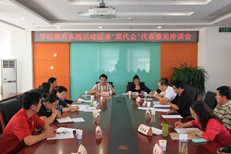 在“双代会”代表座谈会上,与会代表认为开展党的群众路线教育实践活动意义重大,是党的优良作风的真正体现。大家在充分肯定学校工作的同时,就我校党员领导干部在“四风”上存在的问题提出了意见,就教职工队伍建设、科研政策制定、职称评定、改善教师办公条件和具体的民生问题提出了建议。