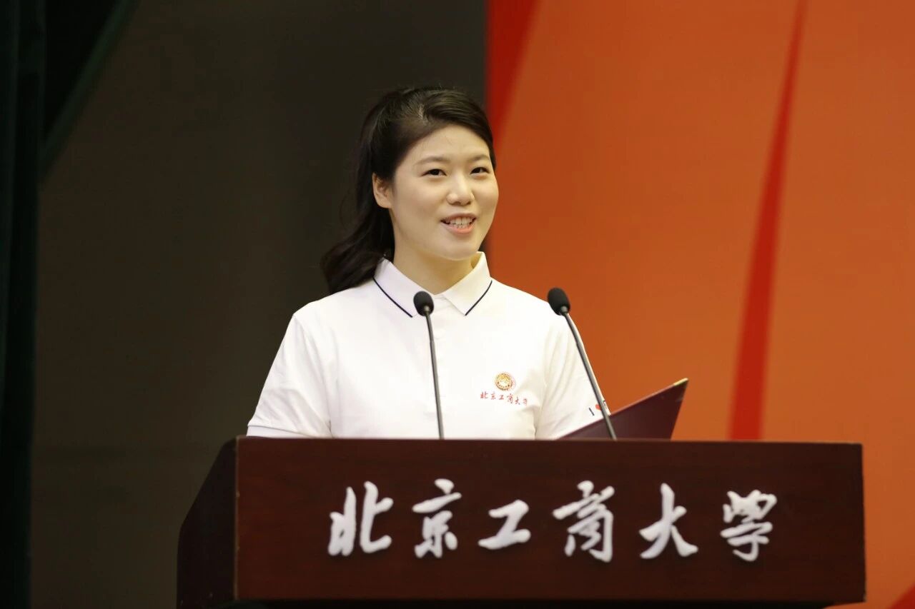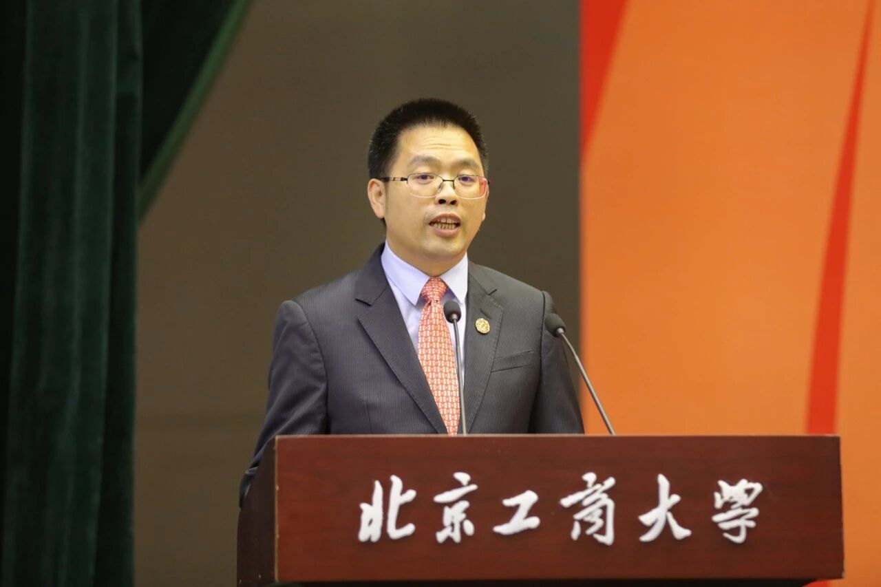 中国人民抗日战争暨世界反法西斯战争胜利80周年纪念大会志愿者、马克思主义学院廖承禹作为在校生代表发言,他分享了自己作为志愿者参与九三阅兵的经历,表示这是一次触摸时代脉搏、感受国家发展的生动课堂,体会到北工商人的担当与使命。同时他也提及了研究生生活的几点心得,希望新生们主动学习,寻找心之所向;大胆尝试,在实践中成长;心怀感恩,传递温暖与能量。最后,他勉励全体新生把个人的成长融入时代发展的浪潮,用“工商一体化”理念破解学科前沿难题,为学校高水平研究型大学建设贡献青春力量。