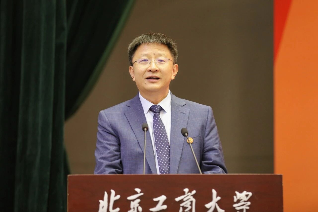 党委副书记、校长郭建华教授以《向下扎根 向上求索》为题发表讲话。他代表学校对2025级新生表示热烈的欢迎和祝贺,向家长和老师们的悉心培养致以诚挚的感谢。他指出,当前,我国正在以中国式现代化全面推进强国建设、民族复兴伟业,党和国家事业发展对高等教育的需要,对科学知识和优秀人才的需要,比以往任何时候都更为迫切。研究生教育作为国民教育的最高层次,是国家创新体系的关键支撑,是拔尖创新人才自主培养的主渠道。北京工商大学高水平研究型大学的建设,离不开研究生教育的高质量发展。他阐释了“研究”的内涵和分类,鼓励新生找准定位,在科学探索与国家发展间找到着力点,走出有价值、有贡献的研究之路。