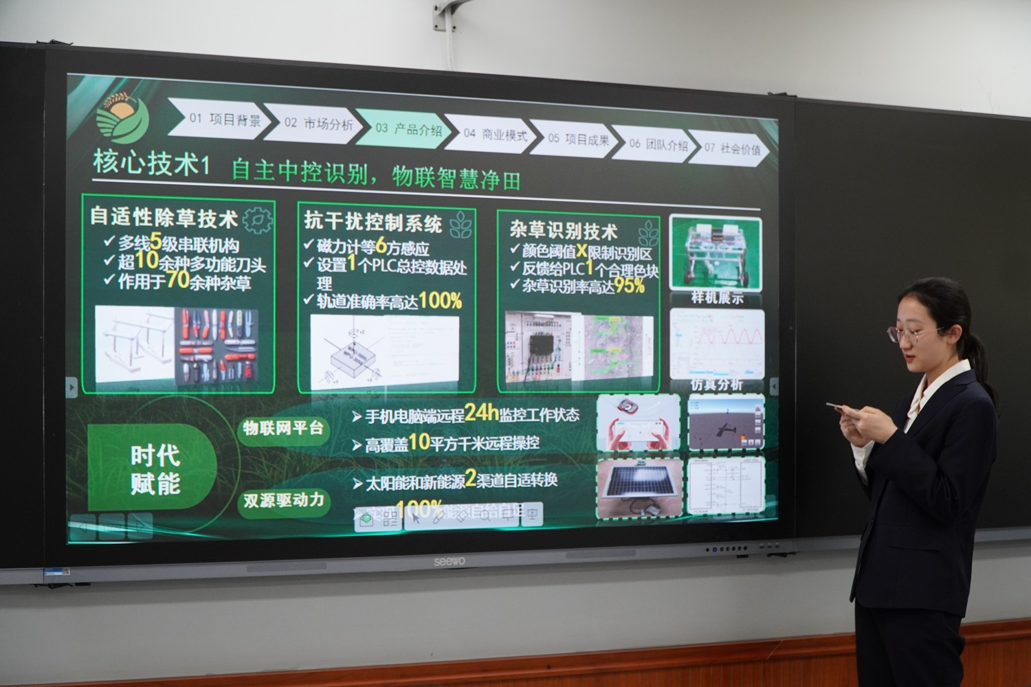 着力构建精细分层、精准滴灌的竞赛指导体系,显著提升项目培育效能。种子项目“精耕细作”,为每个项目配备一名专家进行“一对一”深度辅导,建立“月度反馈机制”,以台账化管理实现精准把脉。通过组织种子项目中期汇报,团队在实战中及时发现短板,动态优化方案,确保核心竞争力持续提升。潜力项目“重点孵化”,聚焦学科特色精准施策,组织多场专家辅导会,围绕项目计划书精修、核心逻辑提炼、团队协作优化等关键环节,采用小组研讨、专家诊断等模式,对学生项目进行多轮次多角度研修打磨,提高项目竞争力。资源保障“全面升级”,扩充学校创新创业专家库,新聘任13名来自高校、企业、投资机构等领域的知名专家担任校外导师,为不同层次项目提供更强有力的支持。举办第十二届创新创业大赛暨中国国际大学生创新大赛(2025)校赛,强化路演实战演练。及时响应赛制变化,围绕2025年大赛新要求、新趋势及成果转化策略,组织多场政策深度解读会。首次采用开放式跨校联动形式,推出“‘点亮创新思维,走近创新前沿’2025年创新创业大讲堂”,邀请知名专家聚焦赛事解析、商业计划书写作、商业表述等核心能力开展高端辅导,拓宽师生视野。