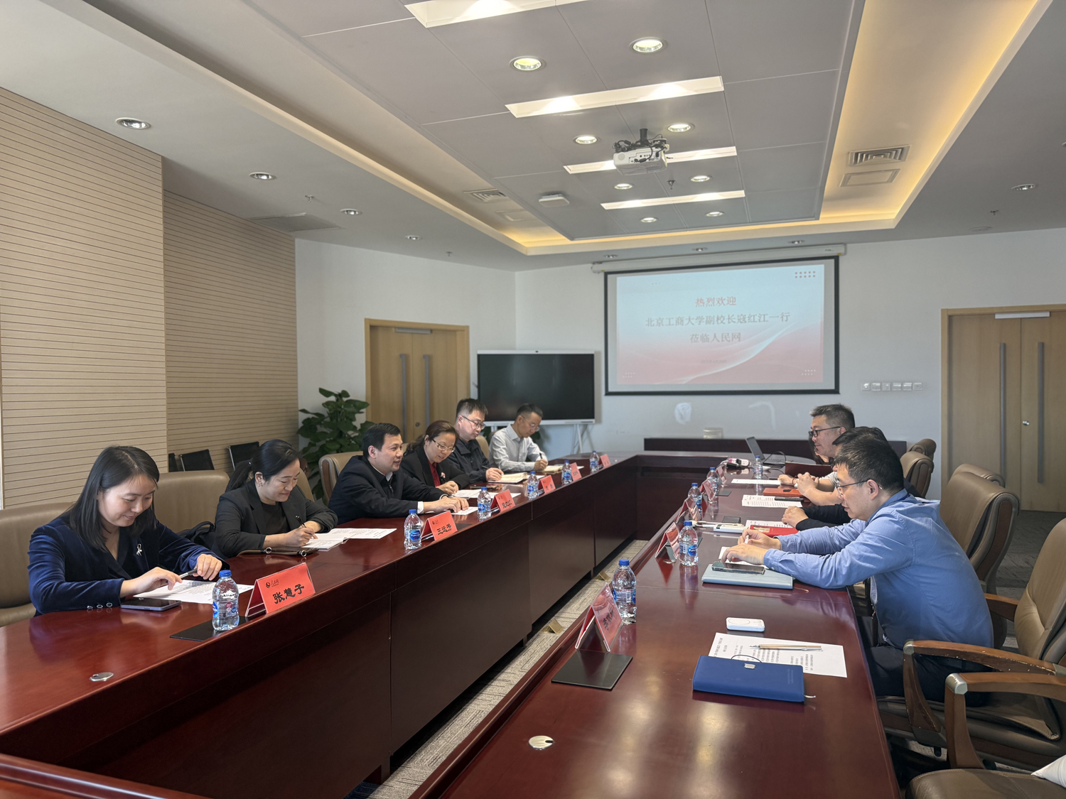 寇红江对人民网给予学校发展的关心与支持表示感谢,并介绍了学校“工商一体化”的办学定位及近年来在“双一流”创建、学科建设、人才培养方面取得的成果。他指出,北京工商大学新闻传播、外国语言文学学科特色鲜明,依托学校商科优势,聚焦经济新闻、品牌传播、国际传播,与人民网在经济报道、技术赋能传播等领域的用人需求高度匹配。当前,学校正着力推动高素质人才培养的供需适配机制改革,希望双方进一步打通人才供需通道,在毕业生高质量就业、舆情研究与智库建设、党建联建与宣传思想文化工作等领域开展全方位、深层次的合作,共同服务首都经济社会发展。