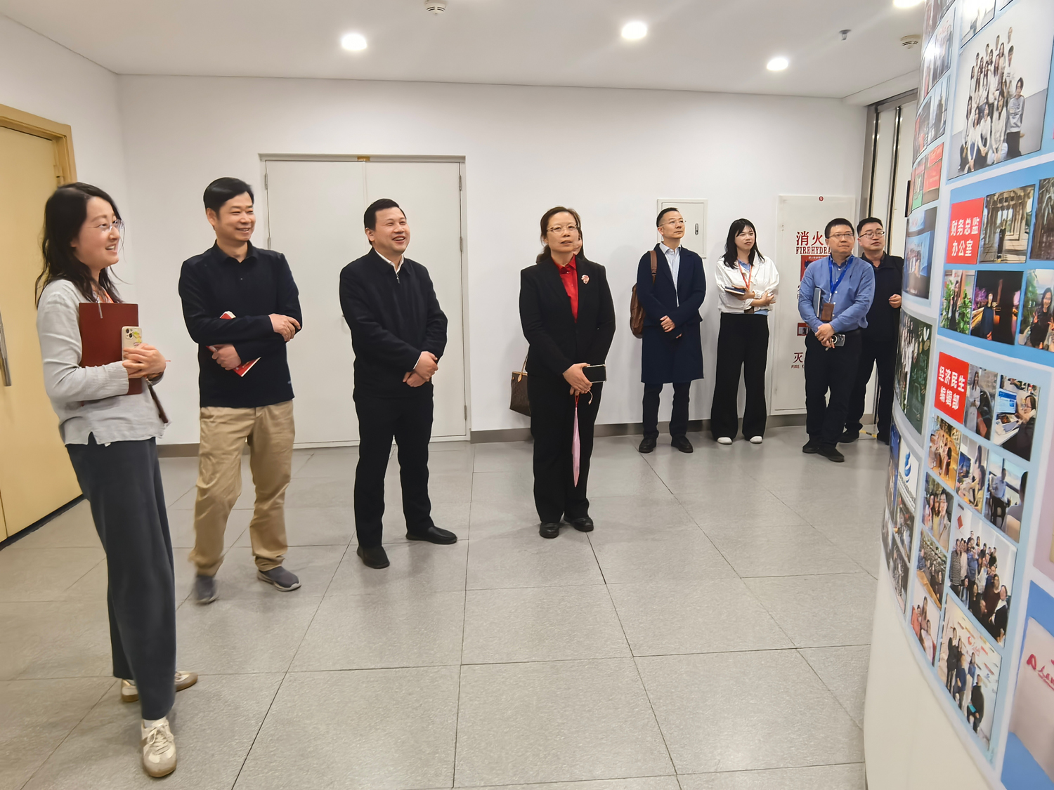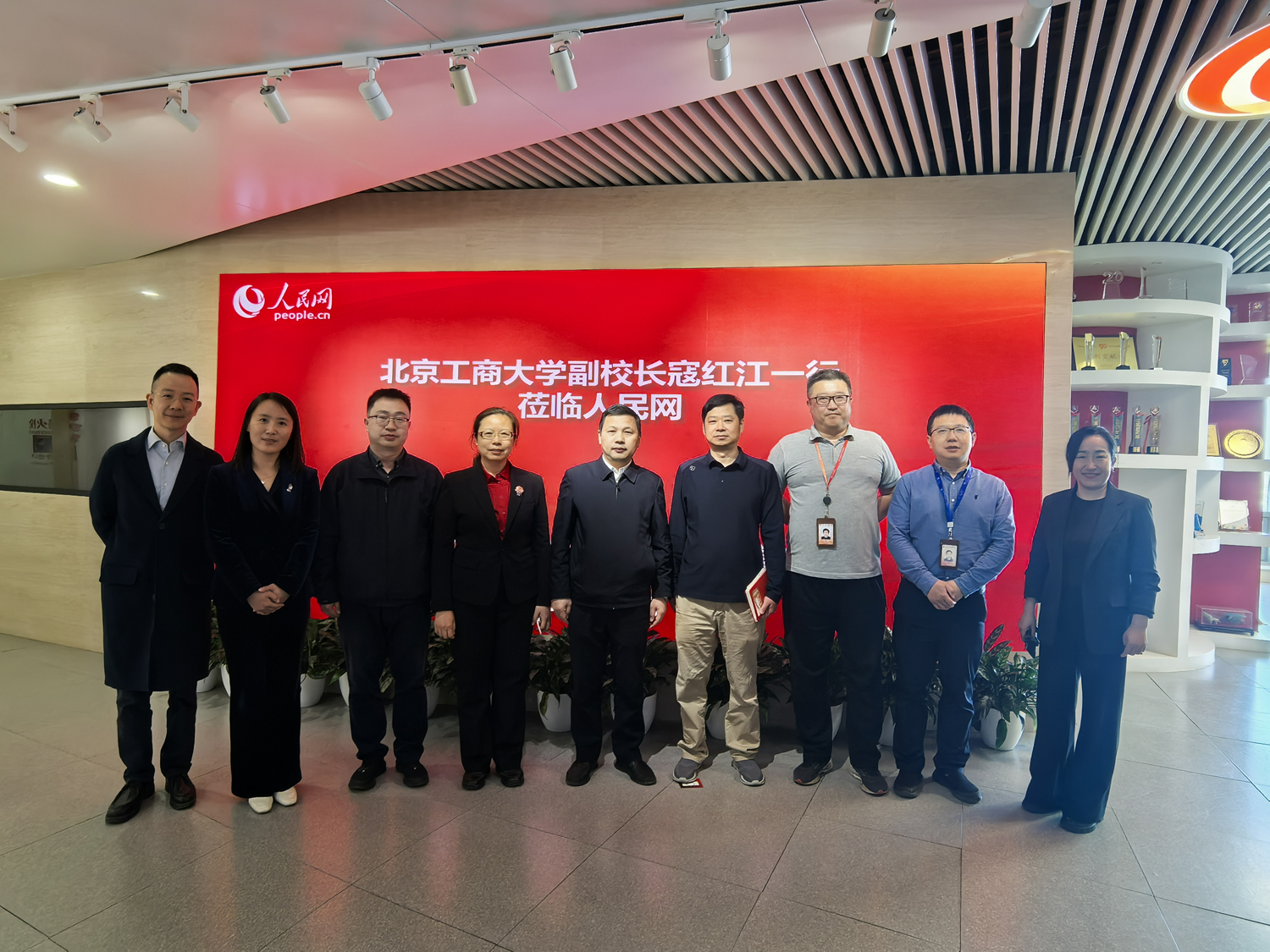 人民网移动内容部主任李镭、技术部主任杜波、移动内容部副主任熊旭、教育频道主编孙竞及教育频道记者李依环热情接待了学校一行,并陪同参观了人民日报社新媒体大楼展厅、演播厅等,详细介绍了人民日报社和人民网的发展历程、内容生产流程及人工智能在媒体融合中的前沿应用。