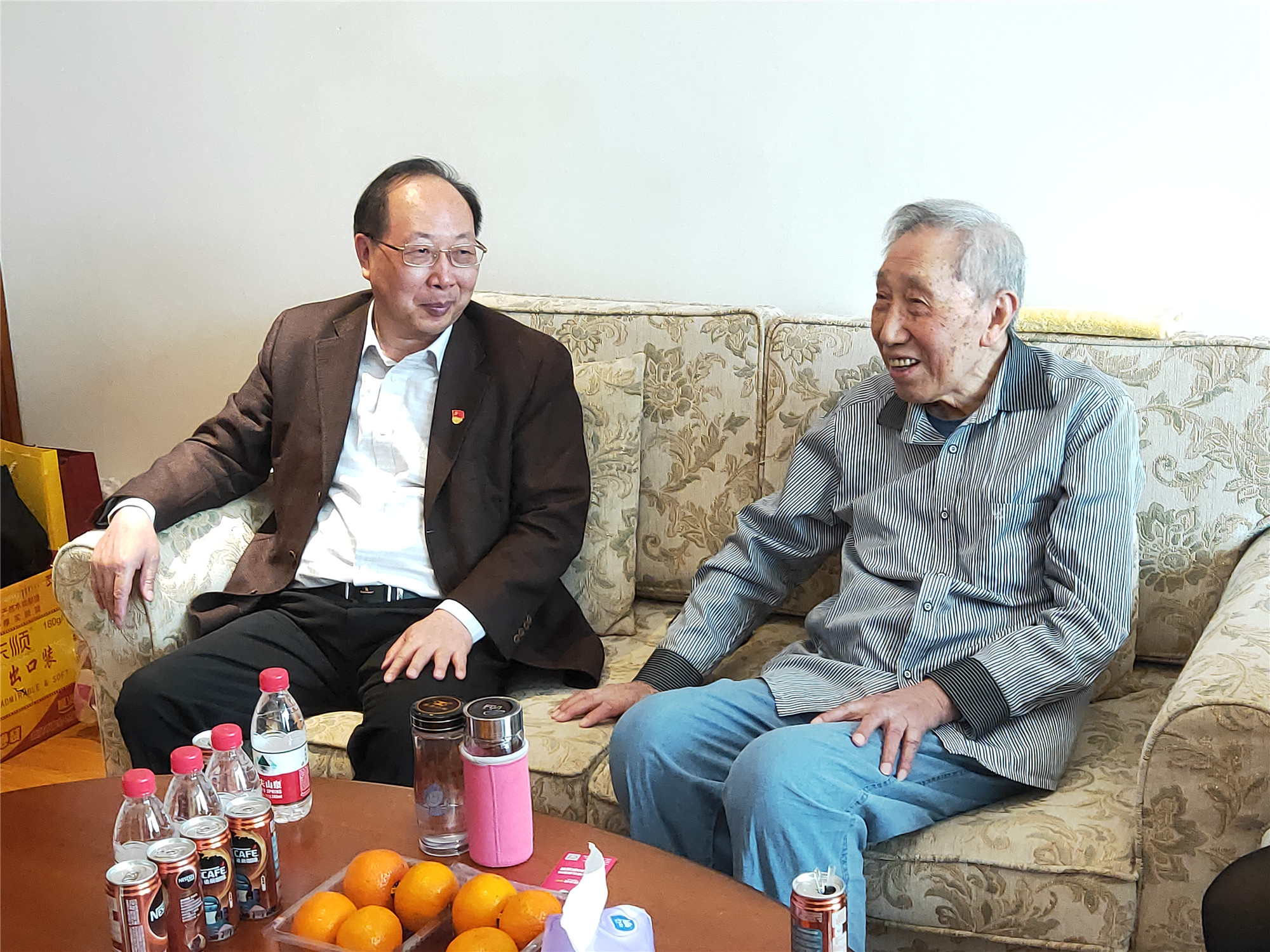 黄先开一行来到王福成居住地,与他共话家常,仔细询问了老人的身体及生活情况。黄先开与王福成促膝长谈,向他介绍今年学校主要工作和发展构想,征询意见和建议。黄先开书记高度赞扬了王老师为党的教育事业和学校发展建设做出的巨大贡献,正是一代代像王老师一样的北工商人的接续奋斗,学校才能取得今天的发展成就,希望王老师继续发挥经验优势,积极为学校发展建言献策,并祝愿王老师身体健康,心情顺畅,生日快乐。5月1日是王老师的93岁生日,收到学校领导的祝福,他非常感动,感谢组织带来的问候,表示虽然是鲐背之年,但在身体允许的情况下,仍然要为学校建设贡献力量。在中国共产党成立100周年之际,他衷心地祝愿国家繁荣富强,人民幸福安康。