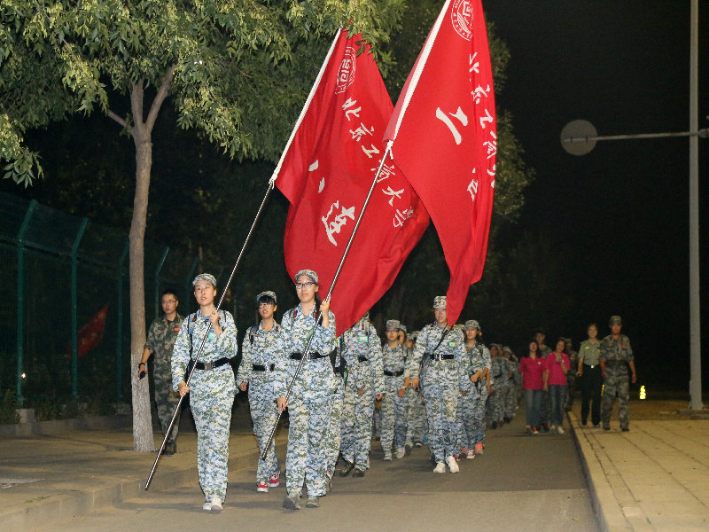 晚上,天气更是凉爽,同学们身着迷彩军装,背着背包,在教官们的带领下完成了长达4.5公里的拉练。一路上同学们喊着响亮的口号,应和着教官唱起军歌,成长的路上有汗水有泪水,但更多的是战胜自我后的喜悦与收获。
