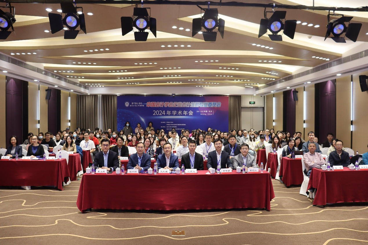 10月26日,中国会计学会企业会计准则专业委员会2024年学术年会在我校举办。本次研讨会由中国会计学会、中国会计学会企业会计准则专业委员会主办,我校商学院、注册会计师行业研究院承办。我校党委常委、副校长毛新述教授出席会议并致辞,来自财政部会计准则委员会、中国财政科学研究院、清华大学、中国人民大学、厦门大学、暨南大学、东北财经大学、北京外国语大学、北京工商大学、安永会计师事务所、德勤会计师事务所、容诚会计师事务所等学术界及实务界的120余名专家学者共同参会。会议开幕式由中国会计学会会计准则专业委员会主任委员、我校注册会计师行业研究院院长王鹏程教授主持。