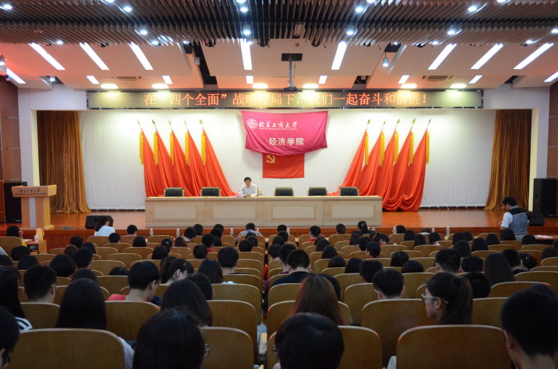为深入学习习近平总书记关于“四个全面”重大战略思想的论述,5月13日,经济学院在良乡举行党员先锋工程——“情源工商 为侨服务”党员志愿服务工作表彰大会。党内著名理论家、中共中央党校原副校长、中直机关侨联主席李君如应邀莅临指导并作以《在四个全面战略布局下,我们一起奋斗和前进!》为题的专题报告。