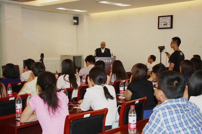 拉马尼·纳拉扬教授的报告以食品包装材料聚乳酸为主线,围绕其物理、化学特性、加工与应用的技术难点以及从实验室走向规模化生产的发展历程。其报告精彩幽默,深入浅出,气氛活跃,互动性强,使会场的师生受益匪浅。报告结束后,教师纷纷向拉马尼·纳拉扬教授现场提问,就共同遇到的学术研究问题进行了交流。