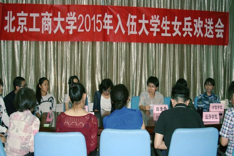 9月21日,学生处(武装部)在阜成路校区举行入伍女大学生士兵欢送会。至此,我校2105年夏秋季大学生征兵工作圆满结束,共有32名男生、8名女生光荣入伍。相关学院的党总支副书记、辅导员参加活动。欢送会由学生处处长兼武装部部长吕素香主持。