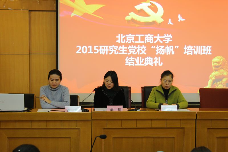 12月9日,研究生党校第九期入党积极分子培训班结业典礼在阜成路校区举行。研究生院副院长兼党委研工部副部长熊慧、校党委组织部李跃萍老师,研究生院许欣老师参加。结业典礼由党校班主任赵璐主持。