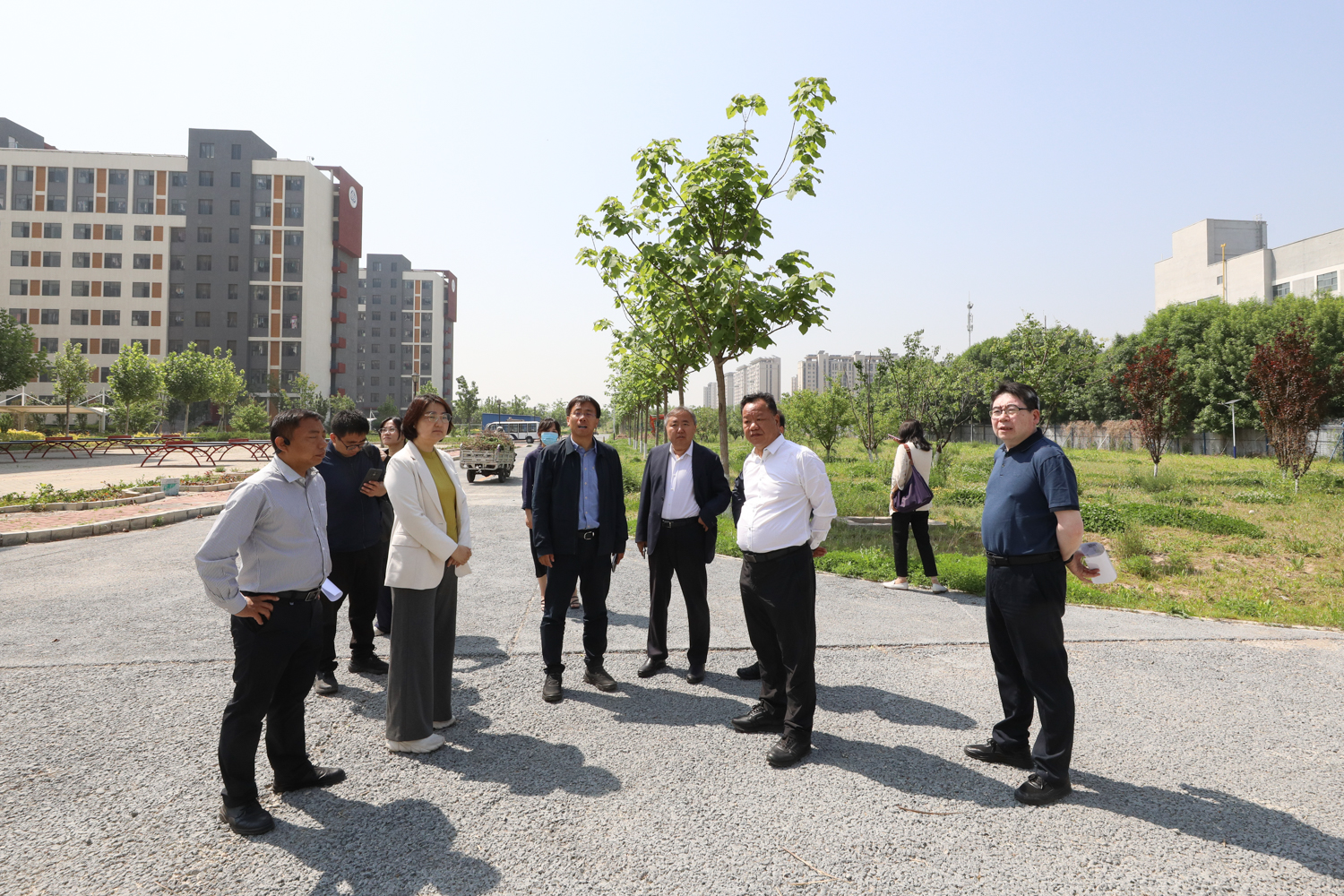 王方、张奇等一行先后实地走访了AB座教学科研楼、良乡主校区总配电室、新建宿舍楼地块,察看项目建设情况,了解学校AB座教学科研楼竣工验收事宜、配电室建设、外电源接入情况,以及新建学生宿舍项目规划设计及建设指标需求情况。随后召开座谈会,与会领导详细听取了学校两校区功能定位及发展规划、良乡主校区建设发展亟需解决的困难及未来校园建设规划,郑文红、校园建设处处长秦东生先后就相关工作进行了汇报。