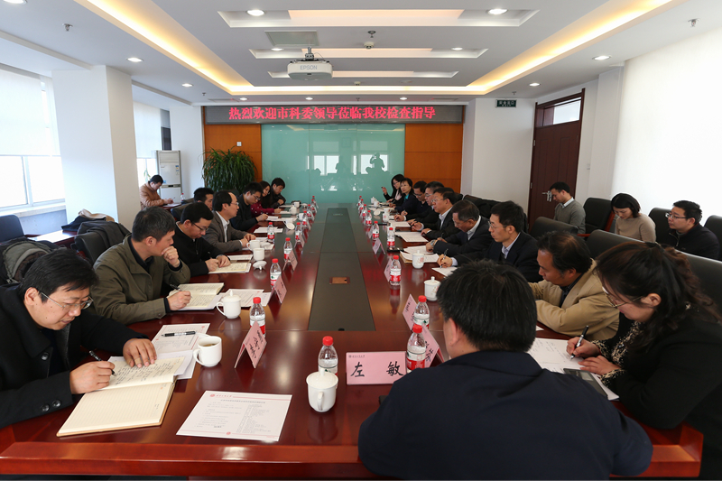 考察结束后,谢志华副校长主持了调研座谈会,并就我校近五年来在科研平台建设、科研经费、科研项目与科研成果四方面取得的成绩做了汇报。孙宝国校长简要介绍了我校食品学科在学校“十二五”期间取得成绩,以及“十三五”期间科研项目申请、申报组建“食品添加剂国家工程技术研究中心”的规划。郑焕敏副主任对我校积极推动科技成果产业化给予充分的肯定,并表示将加强科技金融、产业深加工、北京科学仪器装备协作服务等方面,对我校提供有利的政策支持和扶持服务。市科委呼文亮书记谈到,通过此次调研,看到了很多特色鲜明的研究中心和实验室,倍感欣慰。呼书记从人才计划、市级重点实验室、项目孵化支持和“产学研”科技成果转化四个方面进行总结,并指出高校应该注重政府资源和市场资源的有机结合与合理利用,让科研成果“进书架,上货架”。
