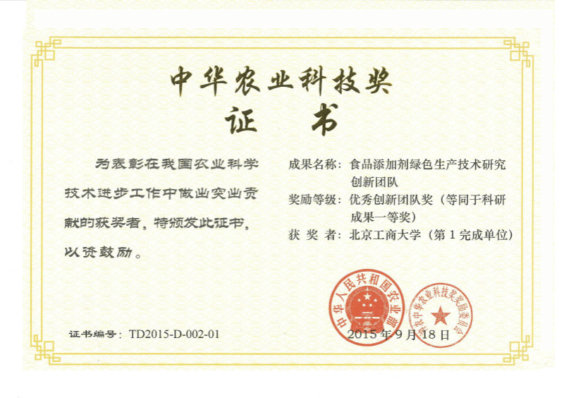 4. 食品添加剂绿色生产技术研究创新团队荣获国家奖励,食品学科建设再上新台阶