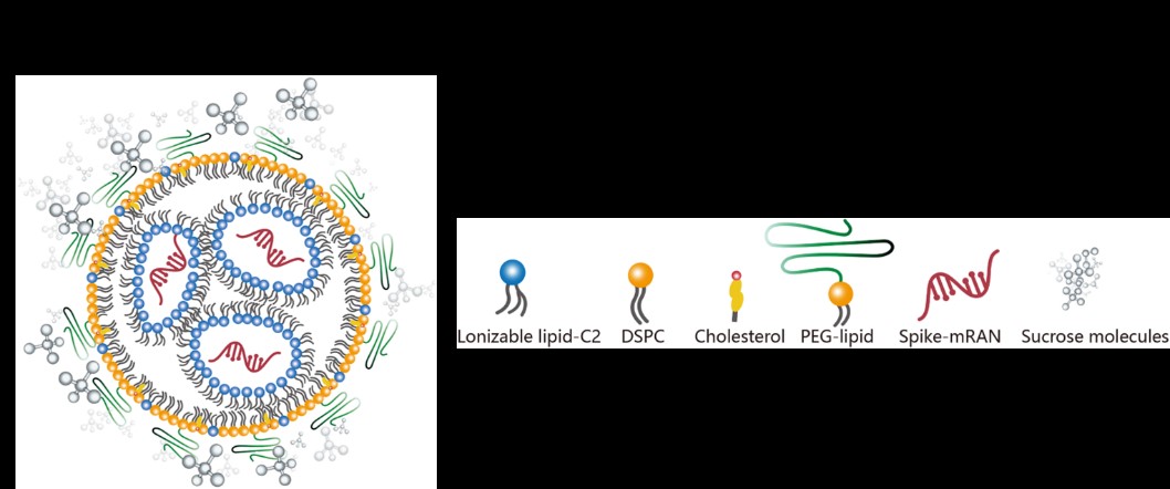 本研究涉及的mRNA-LNP疫苗制剂来自启辰生生物科技有限公司是在北京市科委医药创新品种及平台培育重点项目“新冠纳米LNP-mRNA疫苗冻干制剂中试放大工艺研发”(课题编号:Z211100002521025)的支持下研发,已达到中试放大生产能力。该制剂采用自主知识产权的可电离阳离子脂质C2,二硬脂酰磷脂酰胆碱,胆固醇和聚乙二醇衍生化磷脂组成的脂质纳米颗粒(Lipid Nano-particle,LNP)对mRNA序列进行包裹,配合用作抗氧化剂的蔗糖分子,构建出了完整的mRNA-LNP疫苗。