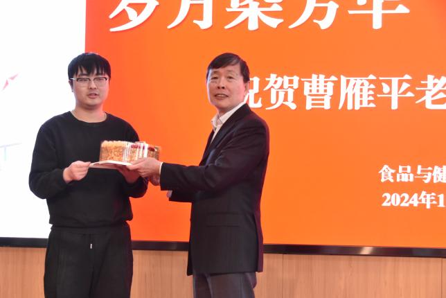 院长王彦波代表学院全体师生向曹老师表达最衷心的感谢和最诚挚的祝福。他表示,曹老师亲历和见证了食品学科的发展历程,在教学、科研、学科等各项事业中发挥了至关重要的作用,希望曹老师持续关注学院发展,常回“家”看看,继续发挥自己的优势,续写新的华章。