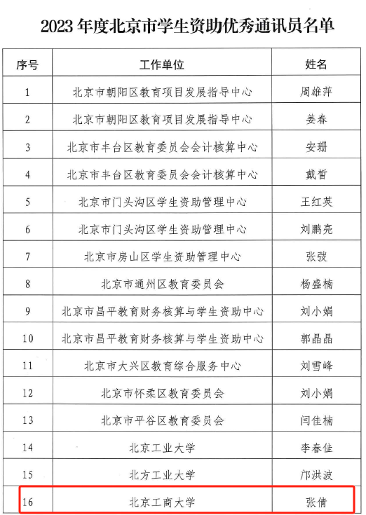在北京市学生资助事务管理中心开展的2023年度学生资助工作优秀宣传工作单位和优秀通讯员评选中,我校获优秀宣传工作单位,学生处资助中心张倩获优秀通讯员。