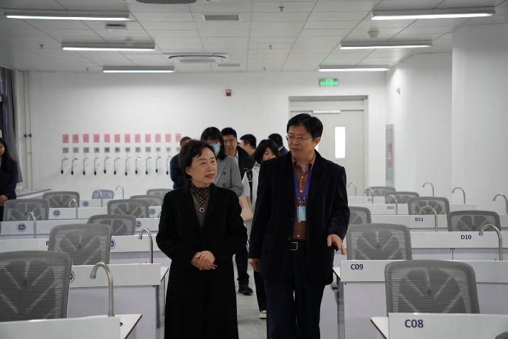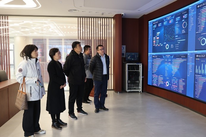 王菁华一行在文二楼、文三楼智慧教室以及数字未来中心现场了解教育教学一体化平台、知识图谱子系统、“直录直播、互联互通、资源共享”智慧教学环境等数字赋能教育教学建设情况,在中国轻工业酿酒分子工程重点实验室了解政产学研融合应用情况。在良乡图书馆和校史馆了解馆藏资源数字化建设情况,走访参观视听空间、光影空间等个性化服务育人场所。