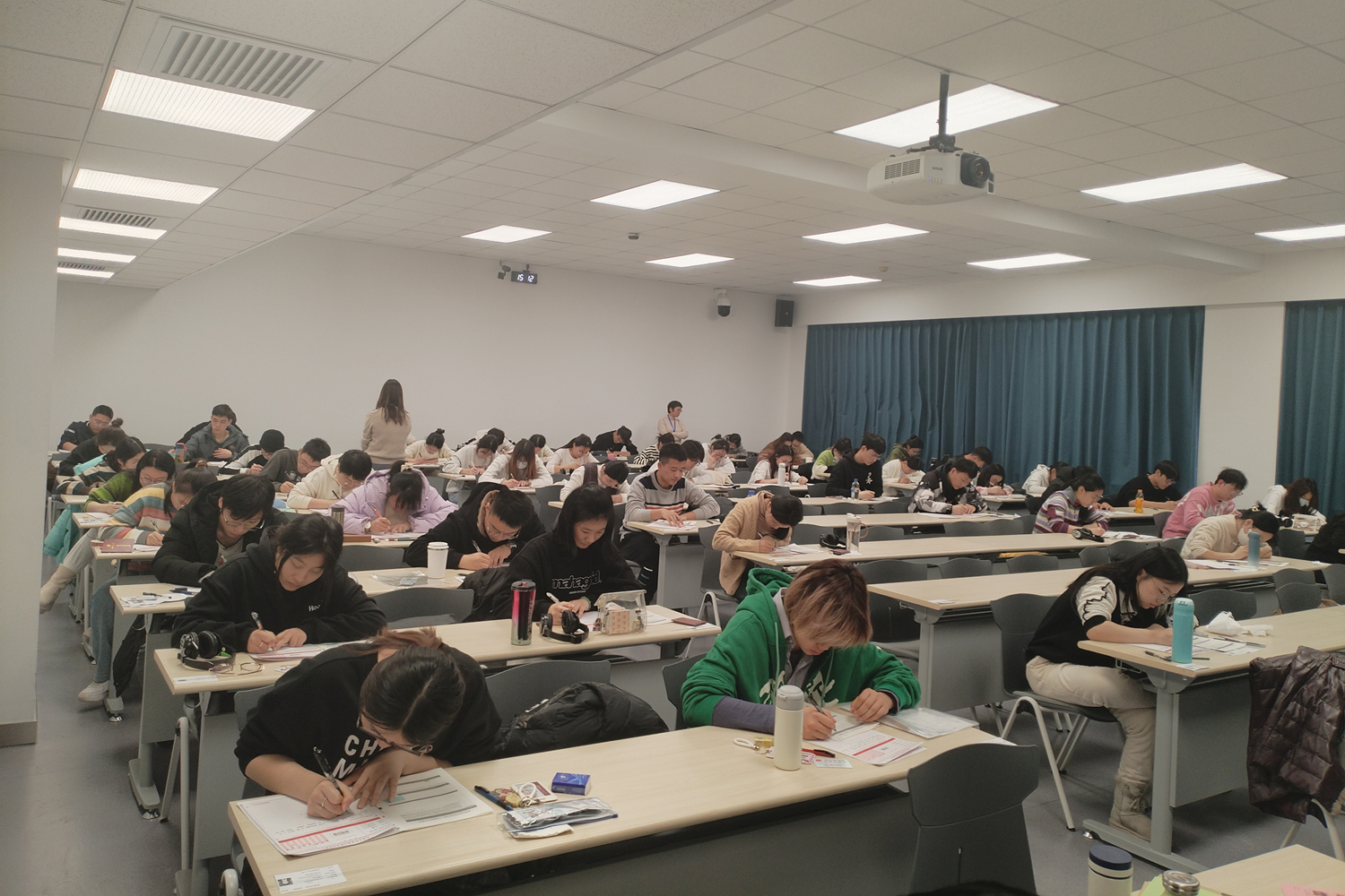 12月16日,2023年下半年全国大学英语四、六级考试在我校良乡和阜成路两个校区同时举行。本次四、六级考试我校报名考生共计9450人,报名人数创历史新高。四级考试阜成路校区共设33个考场,良乡校区共设107个考场;六级考试阜成路校区共设68个考场,良乡校区共设108个考场。