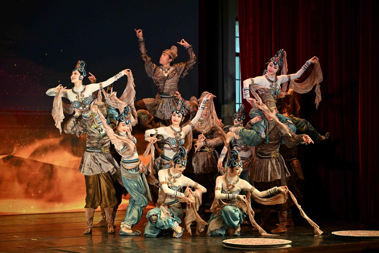 唤醒沉睡记忆,重现盛世乐舞。群舞《丝路·胡旋》美轮美奂,舞者们用曼妙热烈的旋转与精湛的舞姿,再现了古丝绸之路的繁华盛景,用艺术之美诠释了丝路精神与文化交融的独特魅力。