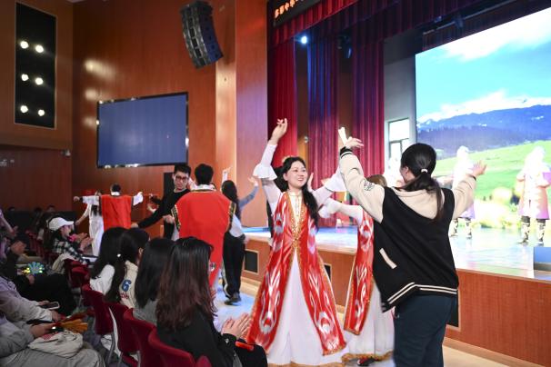 作为一名维吾尔族学生,这次参与《山之水》的互动演出,我心里满是激动与自豪。当熟悉的民族乐器旋律响起,我踩着节拍和乐声起舞的瞬间,仿佛与家乡的文化血脉紧紧相连。能在校园里和艺术家们同台,让更多同学看见民族文化的魅力,我无比荣幸。这场生动的美育课,让我真切感受到各民族艺术交融的美好,更读懂了中华民族一家亲的深刻意义。